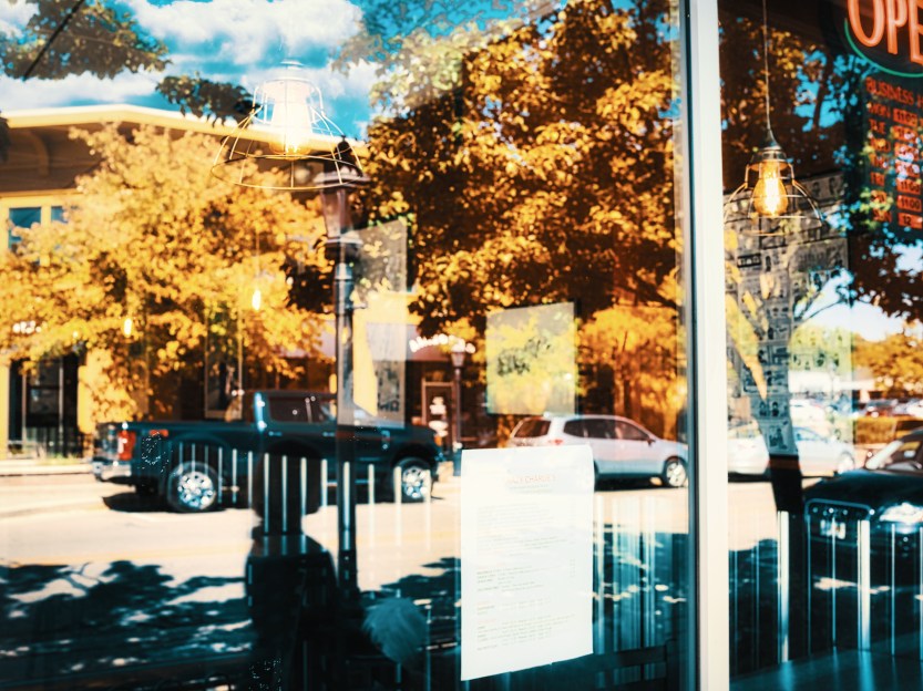 Saturday, I went for a photo walkaround in East Grand Rapids. I looked for windows and reflections in stores and restaurants and imagined images in black and white.