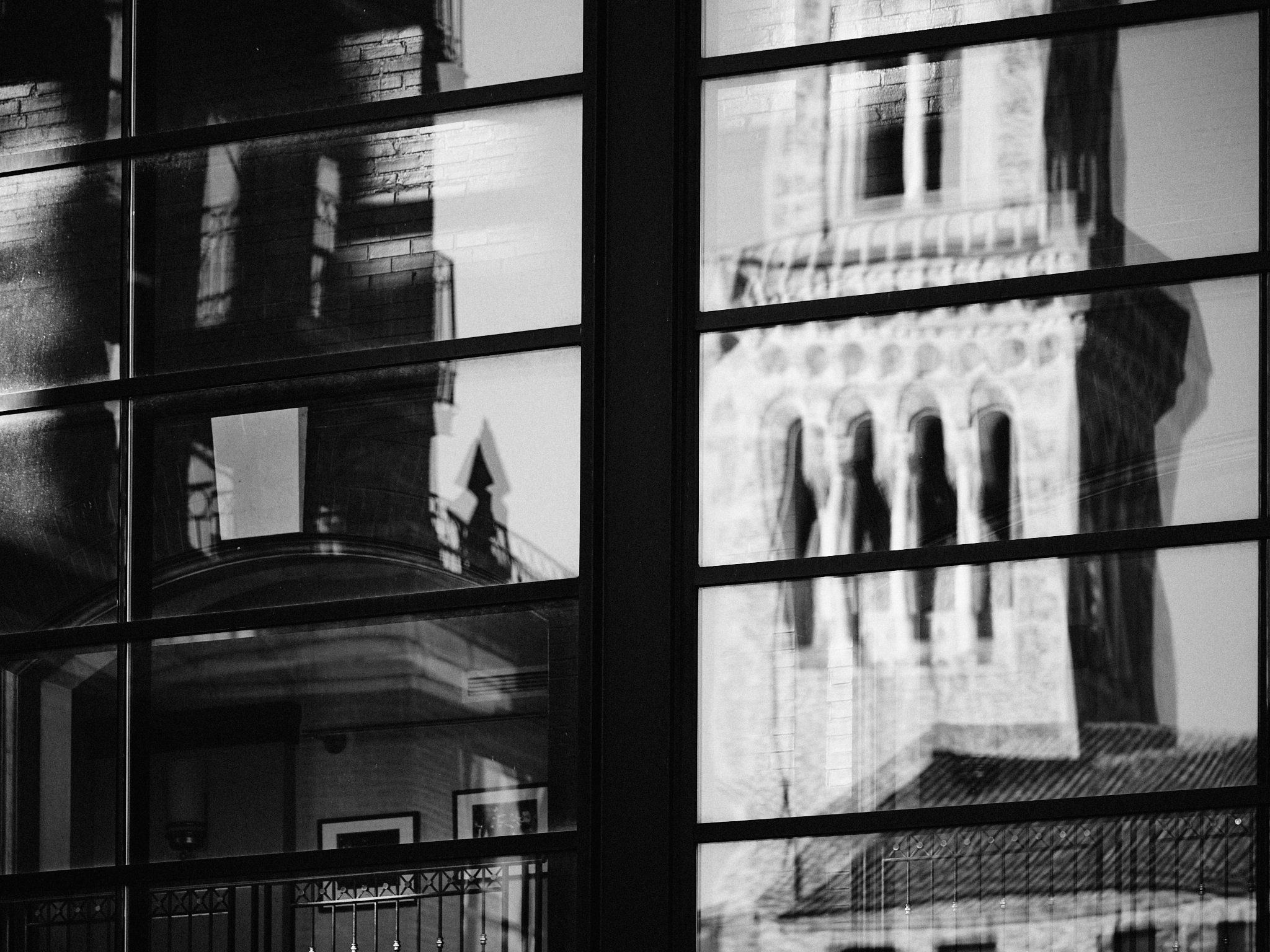 The first plays with the arches of an older building and the renovations inside the one across the street, with strong, bright light on the sides framing deep shadows in the center. Inside and outside all mixed up. The second was a quick “snap” of a shot, but the photo stuck with me.