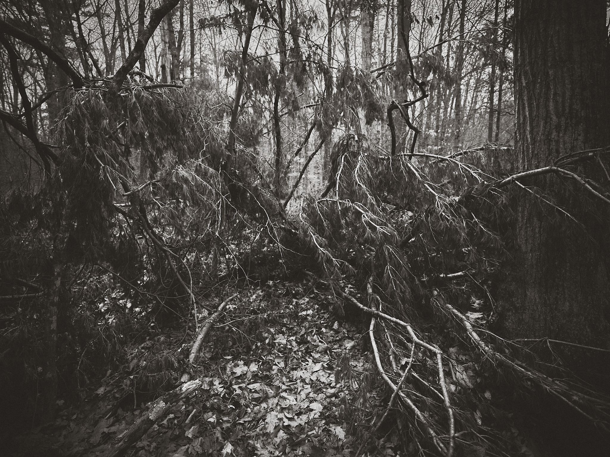 The main theme of the images in these posts is fallen trees and shrubs. In some of the images they look like fallen soldiers on a battlefield. The first one of the two below struck me as “fallen giant,” as in a fairy tale. The second is what I mean by death on a battlefield.