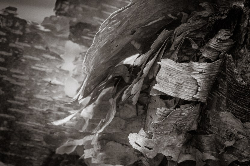 Finally, two images of bark. I love birch trees, from the texture and shape of the peeling bark to the leaves. Here are two images.