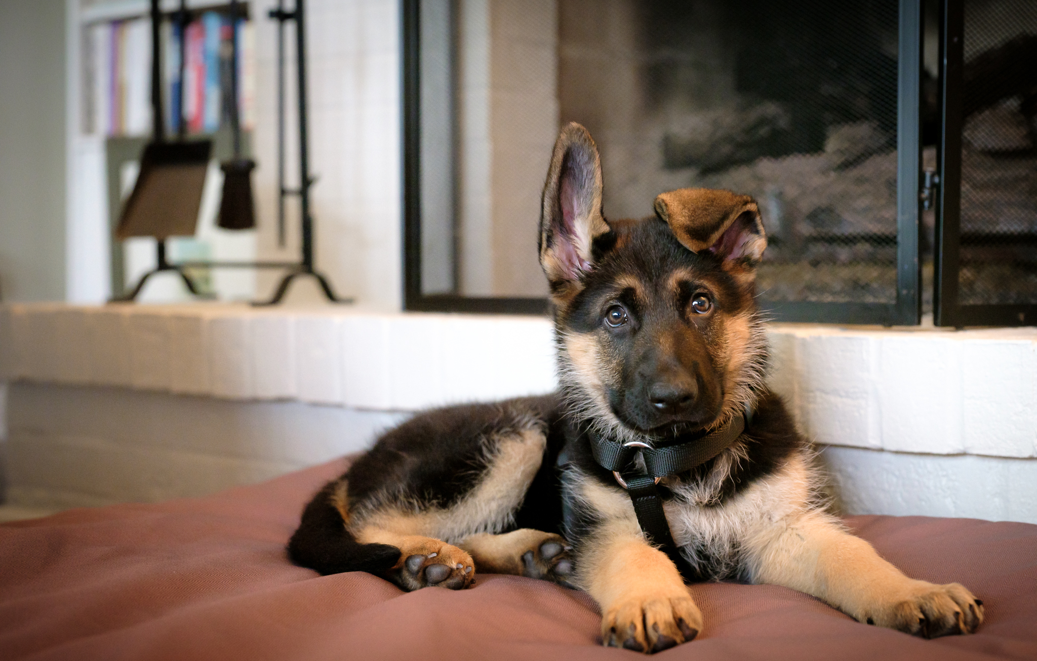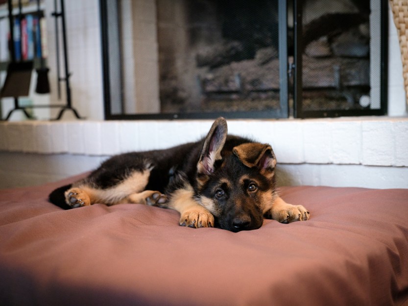 So, this week, then, images of Wallie and his impact on our house. Meet Wallie. The left ear usually is down. It took until he was about 5 months or so for Jonah’s one floppy ear to stand up like a proper German Shepherd, so we’re curious about how Wallie will develop.