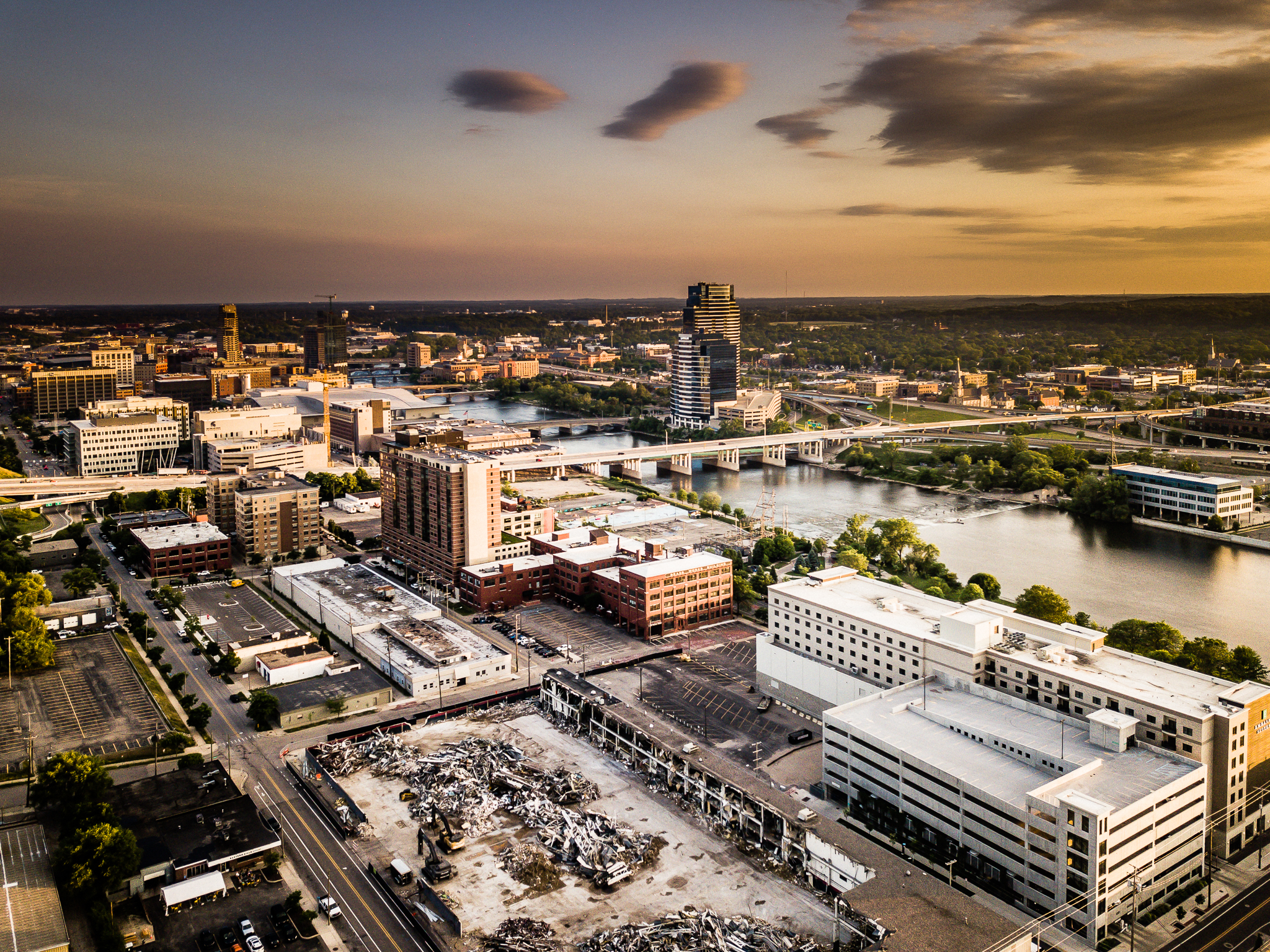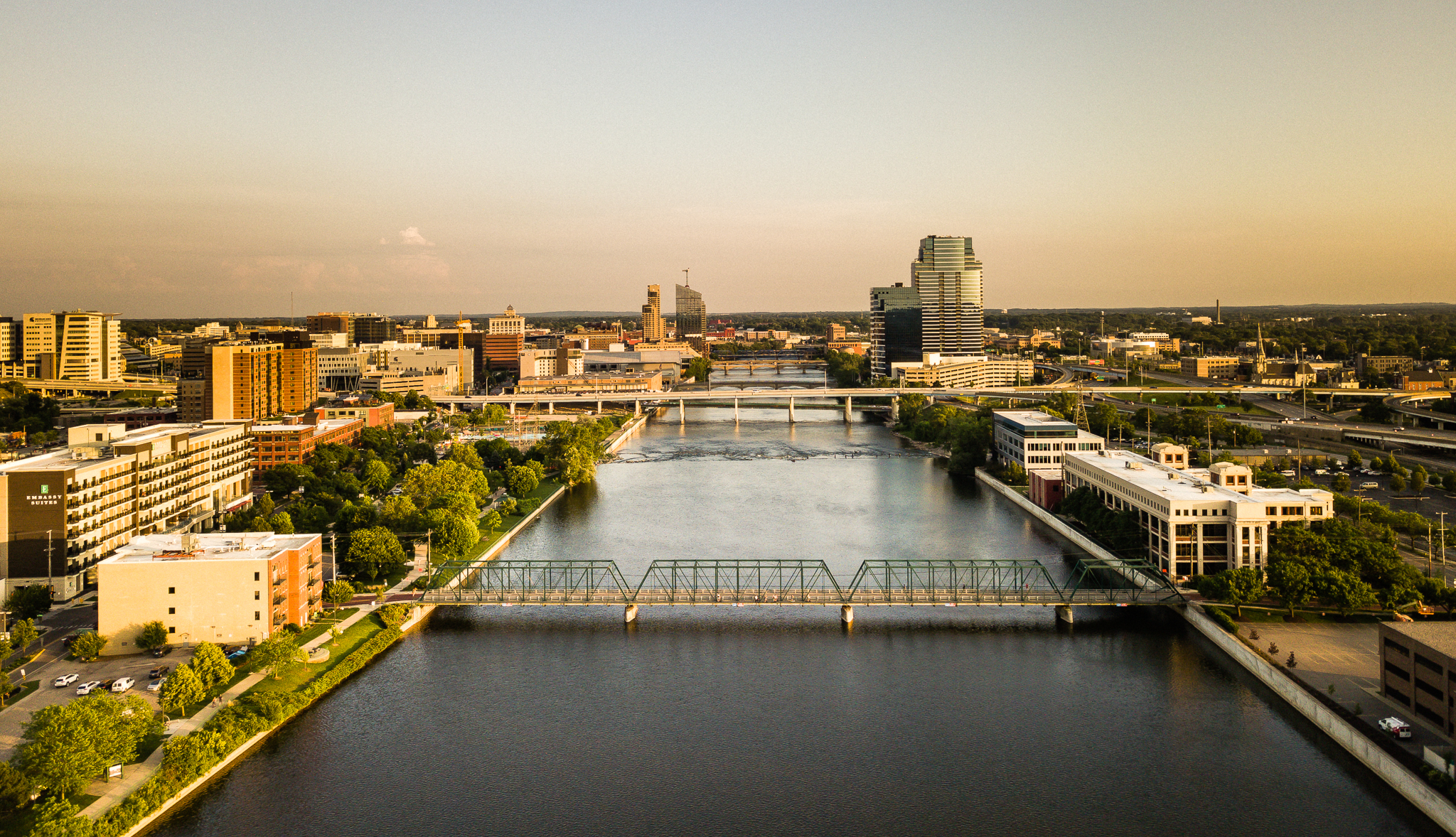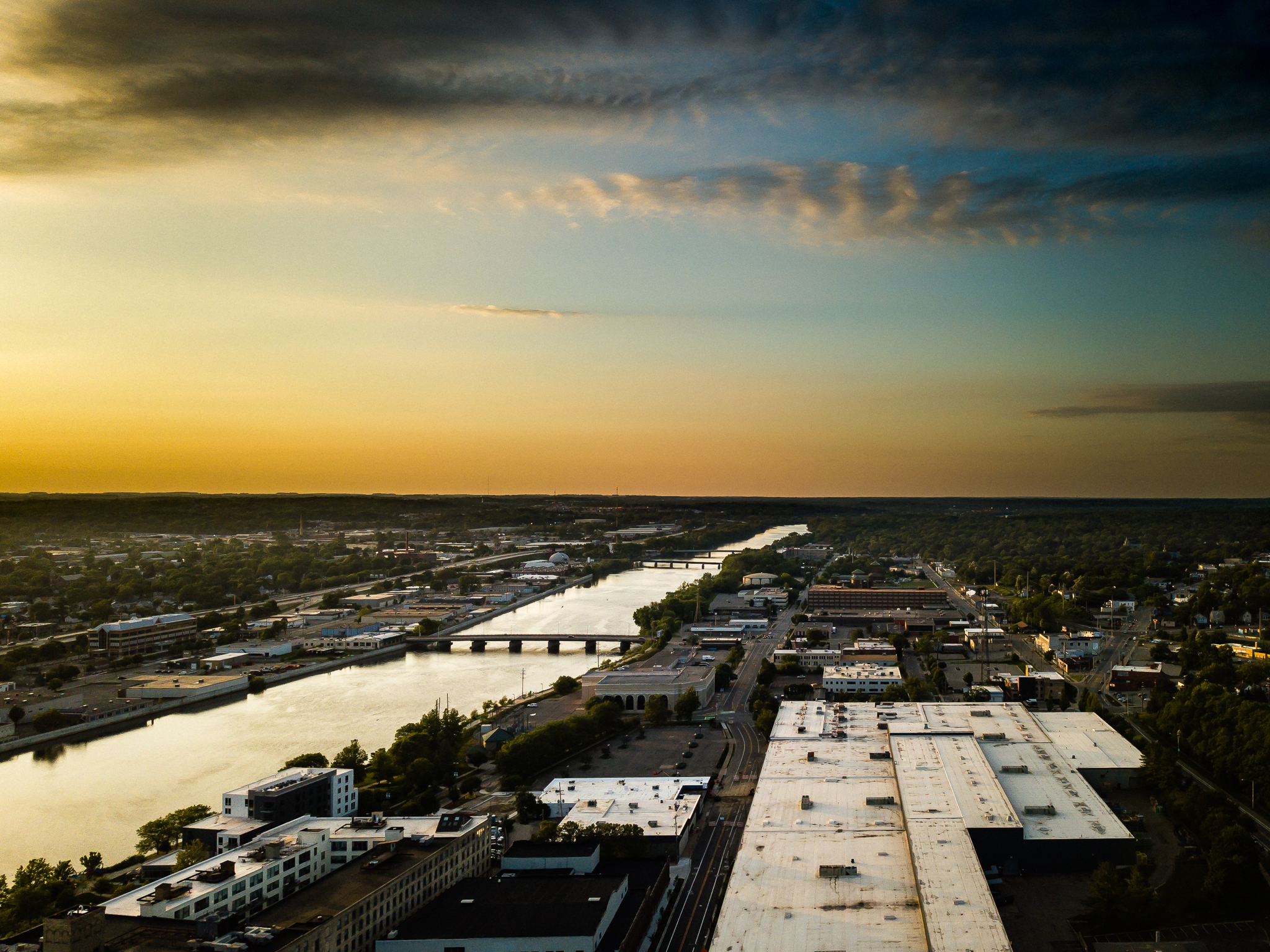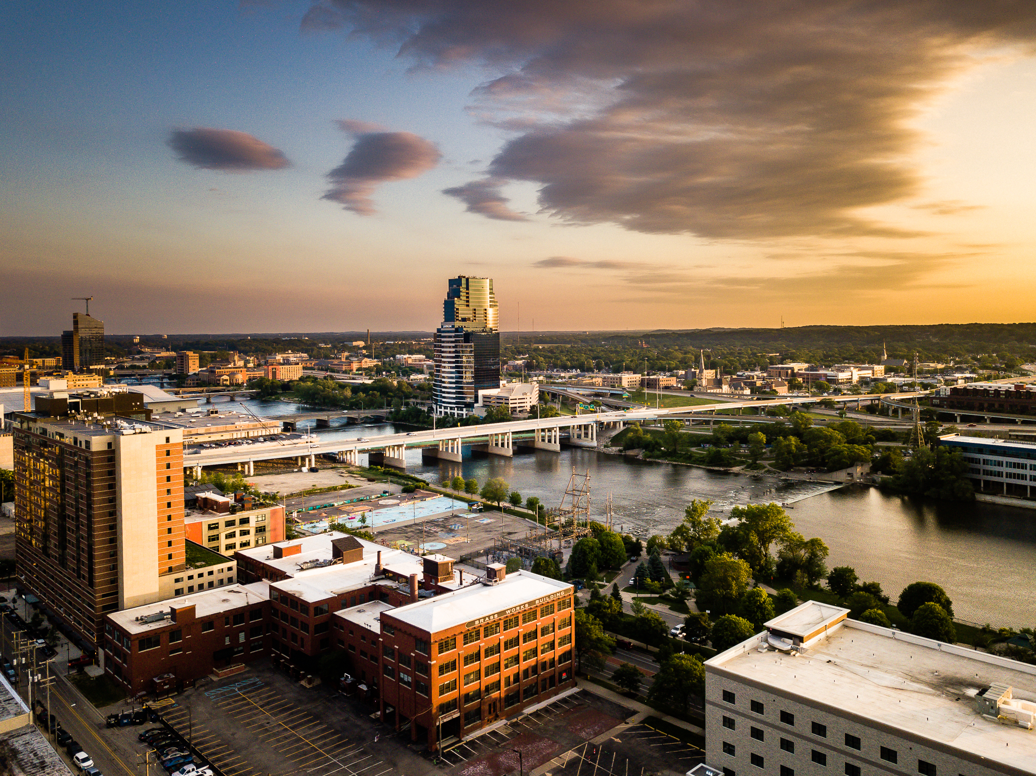 First some context images, looking south down the Grand River and then north. I took the second image about 10 minutes later than the first, and the sun had gone down a bit, plus the clouds were strong to the northwest.