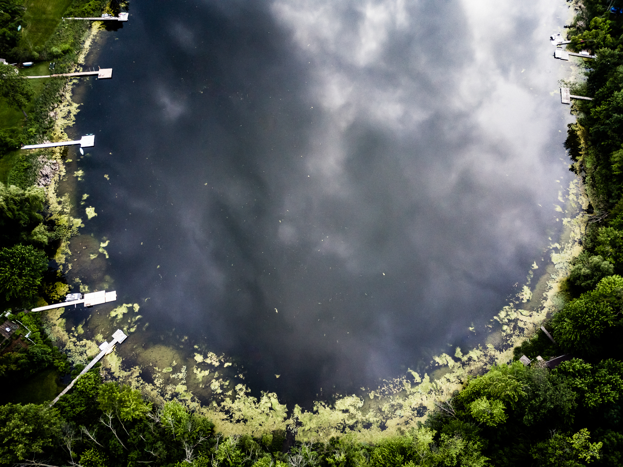 This weekend I did a couple of updates on my Mavic Pro drone and then took it out for a test flight. I decided to take off from Manhattan Park in East Grand Rapids, near sunset. I found some spots to hover over with interesting views and captured a few images of roads, where leading lines were the key feature, and a few with a little lake that had reflections of the cloudy sky.
