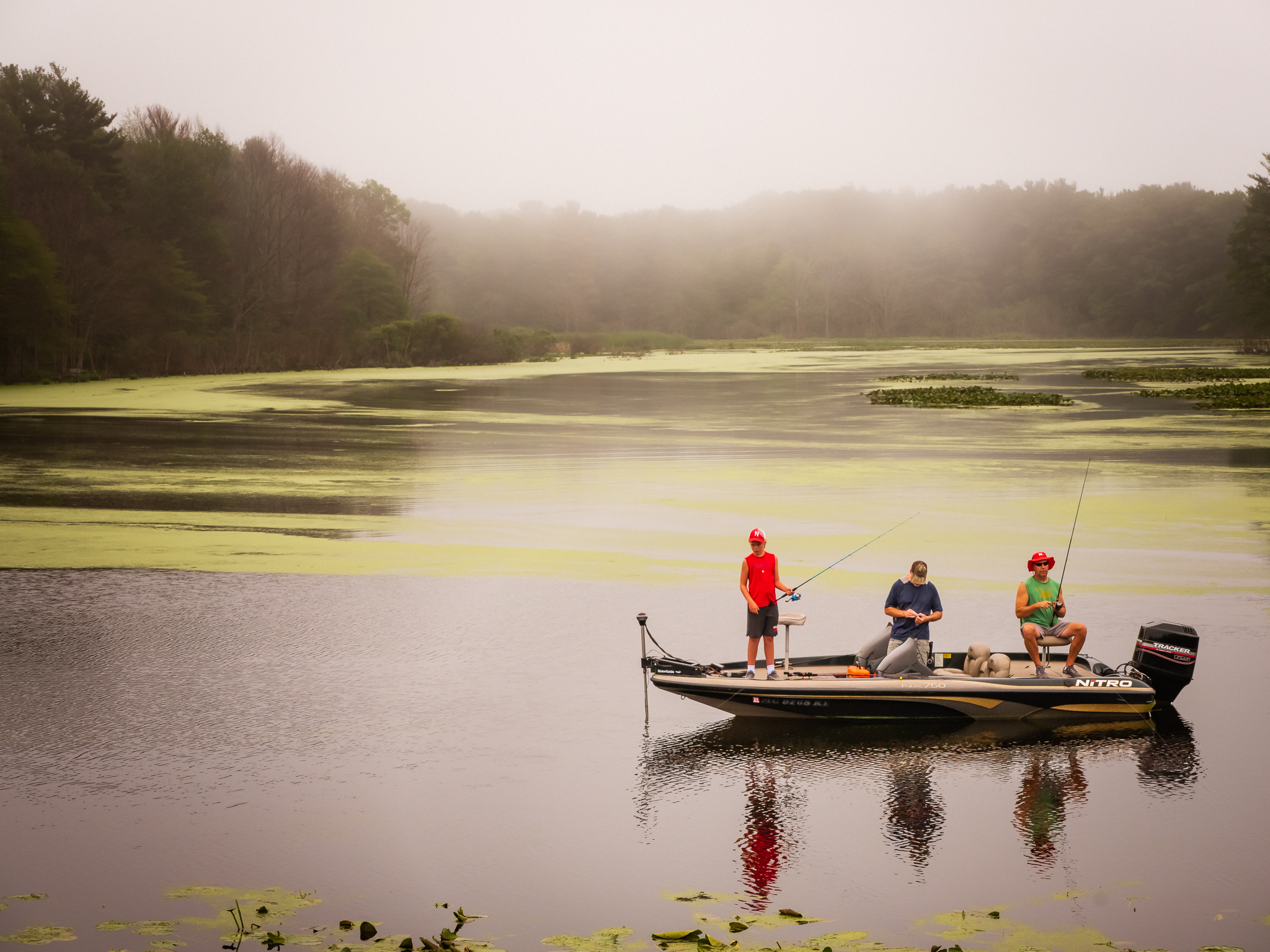 On Wednesday, the one boat I saw go in the water was three guys fishing in Pigeon Lake on the east side of bridge. You can see the algae there too. I asked them about whether the water was clean. They said they did not think it was too bad. They were fishing for pike and bass, they reported.