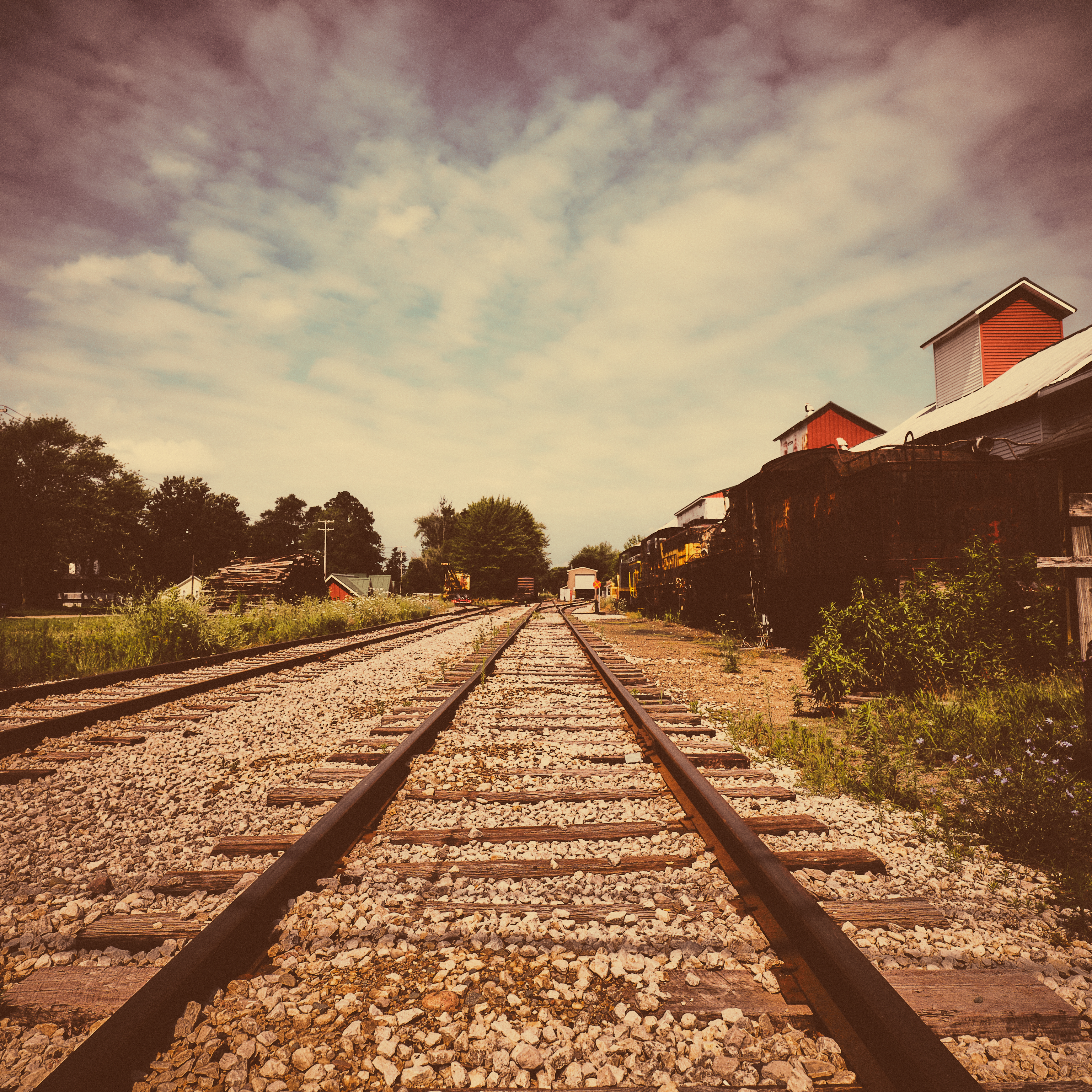 I think this is my favorite of the morning–railroad tracks and the backside of another hardware store and garden center. It looks to once have been a feed mill from the red towers you can see on the right. This feels like a quintessential small town image.