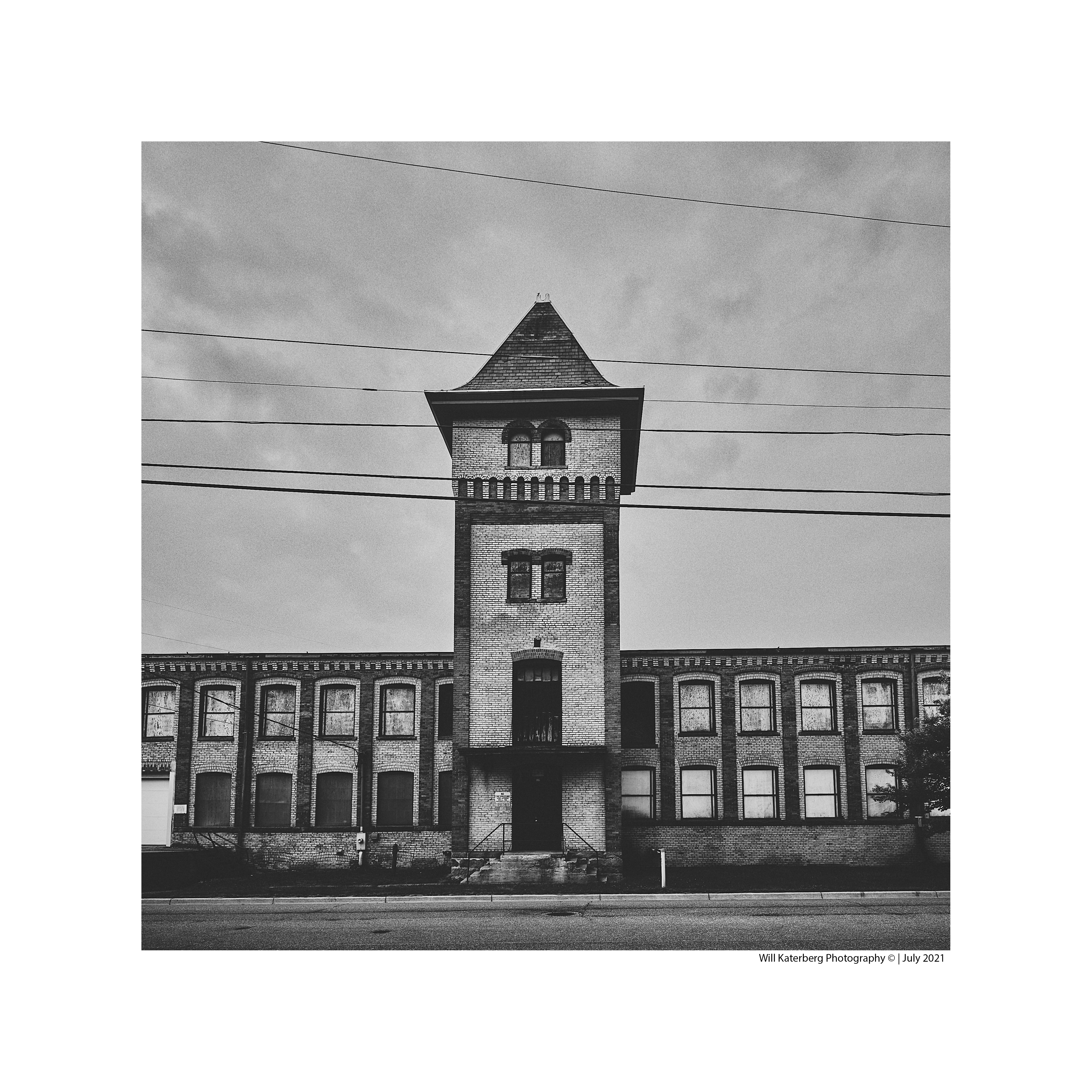 Here are a few images of manufacturing in Belding, past and present. The first set of images is the old basket factory. The last of them is the back of the factory’s tower, seen from the old downtown area. The first one is distorted by the close-up view and the very wide lens I used (18mm full-frame equivalent).