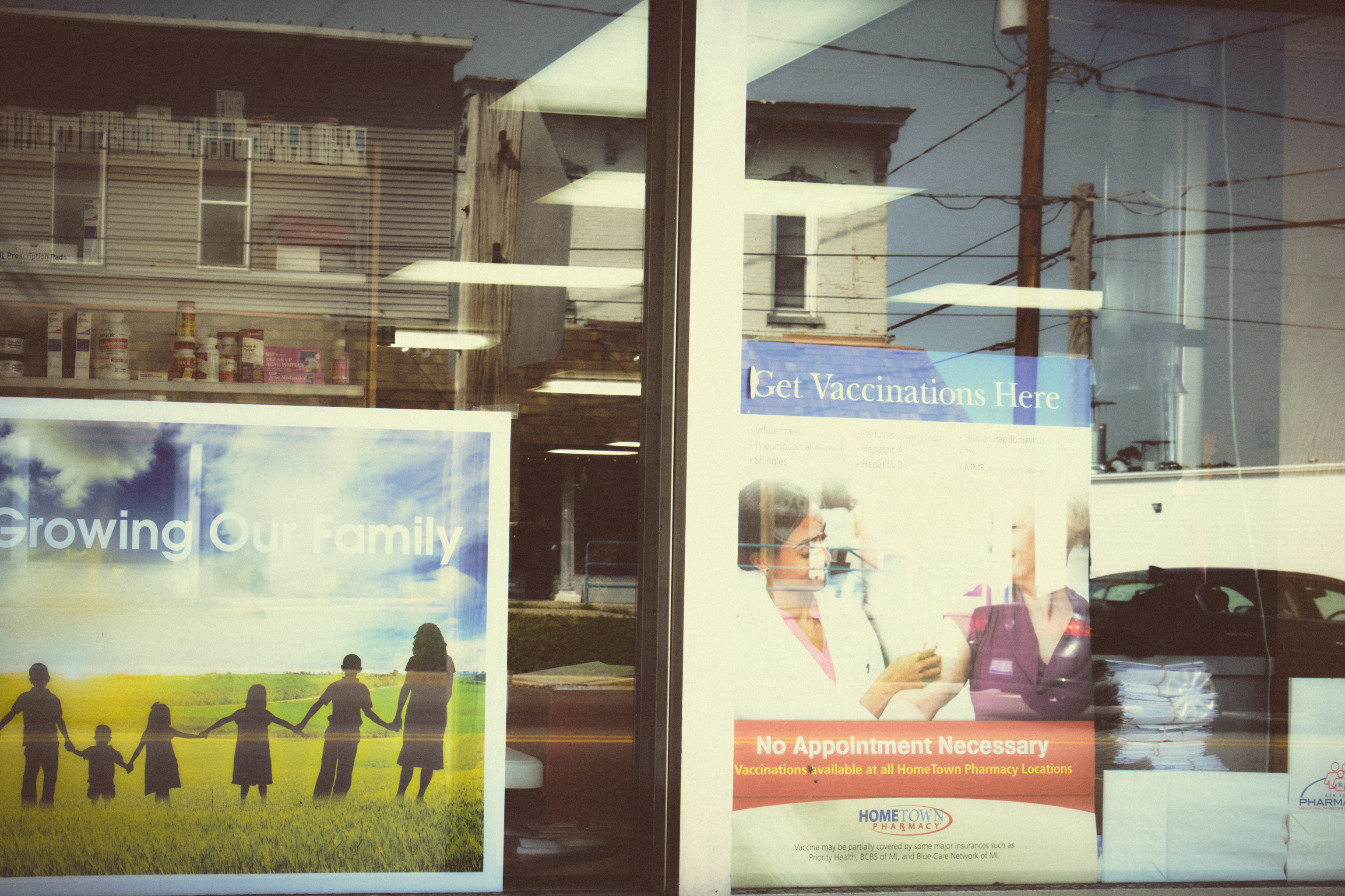 The pharmacy caught my eye for the large number of vaccination posters in the windows. The ones I photographed don’t promote COVID-19 shots, but rather general ones for children and adults and the annual flu shot. Some emphasize community, some emphasize patriotism. I’m curious whether people these days instinctively see all posters like this as about COVID-19.
