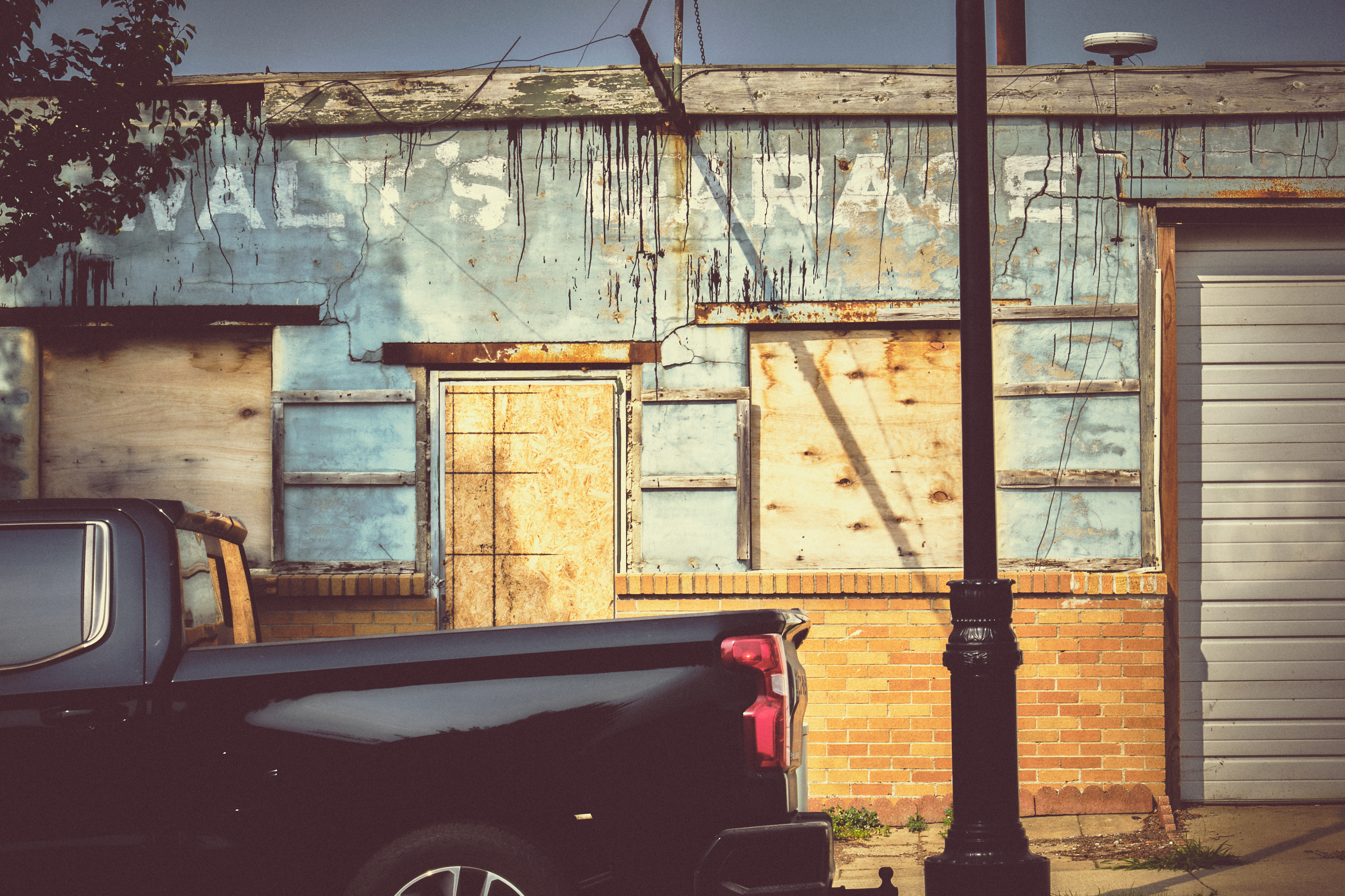 The business district in the village includes a post office, a barbershop, a hair salon, a couple small cafes/restaurants, a pharmacy, a gas station, and more. This little store seemed a bit beat up, but the old building is lovely and and the bright red-orange color caught my eye. The photo feels a bit like a portrait of a building. The classic small town architecture has a pleasing style.