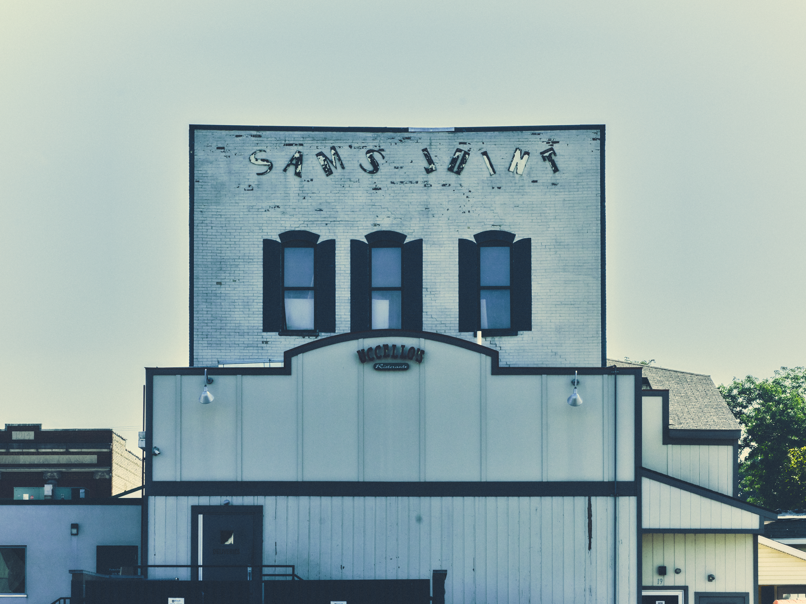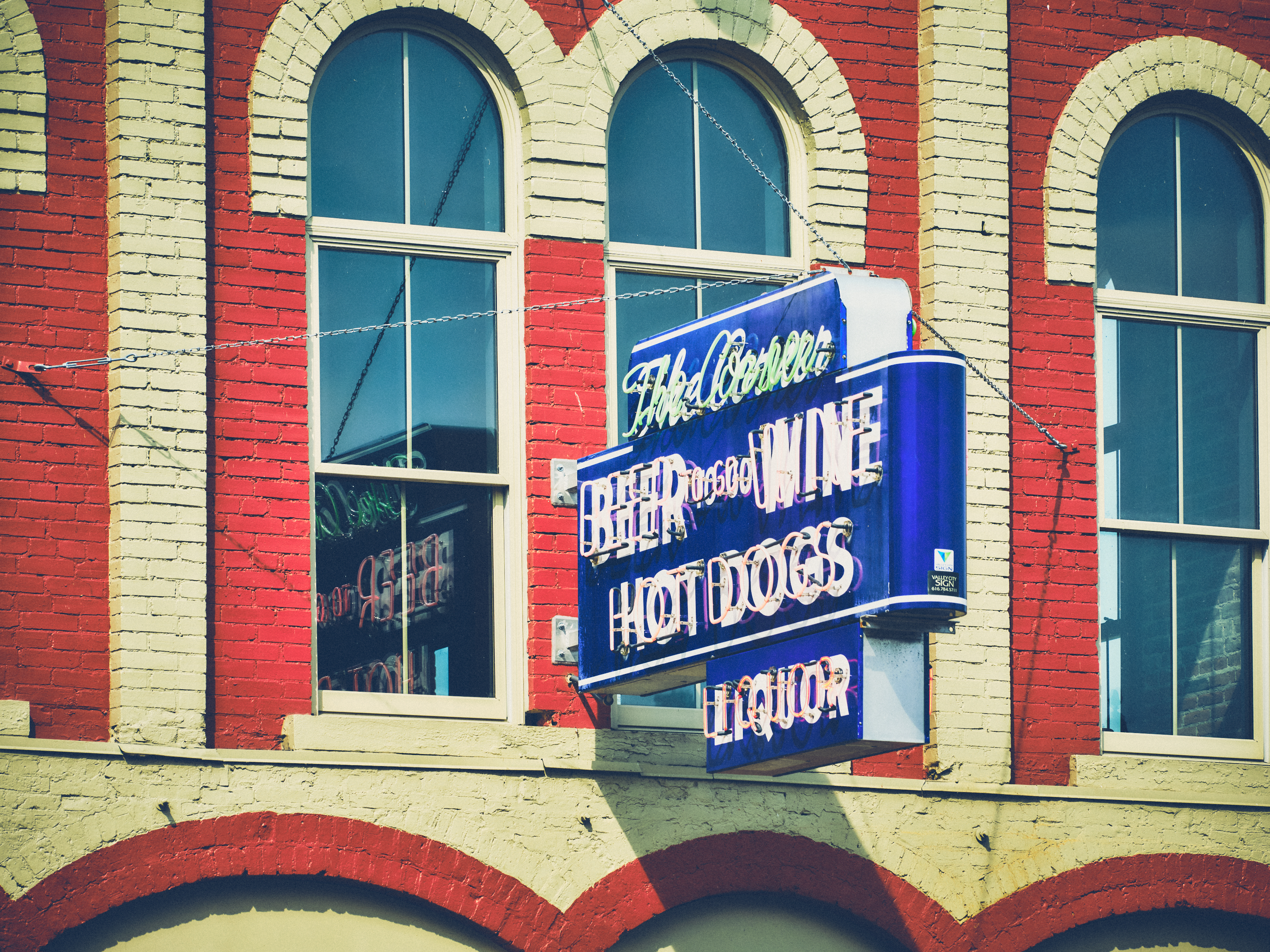 I love the old neon sign in the “The Corner” bar in the front of this image. In the background, you see a place that used to be the Rockford hotel and “Sam’s Joint.” Now it’s an Uccello’s restaurant franchise. The next image is the Sam’s Joint/Uccello’s building from the back. A great old building. The third is a closeup of “The Corner” neon light.