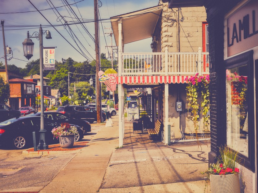 Compared to most of the other small towns in West Michigan that I’ve photographed, Rockford feels like a “boutique” small town. It has a garage in the business district, albeit on the edge. It has lots of cool old buildings, similar to many of the others towns. But most all of the businesses are cafes, ice cream places, pubs, restaurants, and shops, most of which feel more “bougie” than blue-collar. That’s not an insult. It’s just striking. (I grew up in rural communities, but I’m closer to bougie than blue-collar these days.) I did not see a hardware store in the business district, for example. But I did see a place to recharge an electric car.