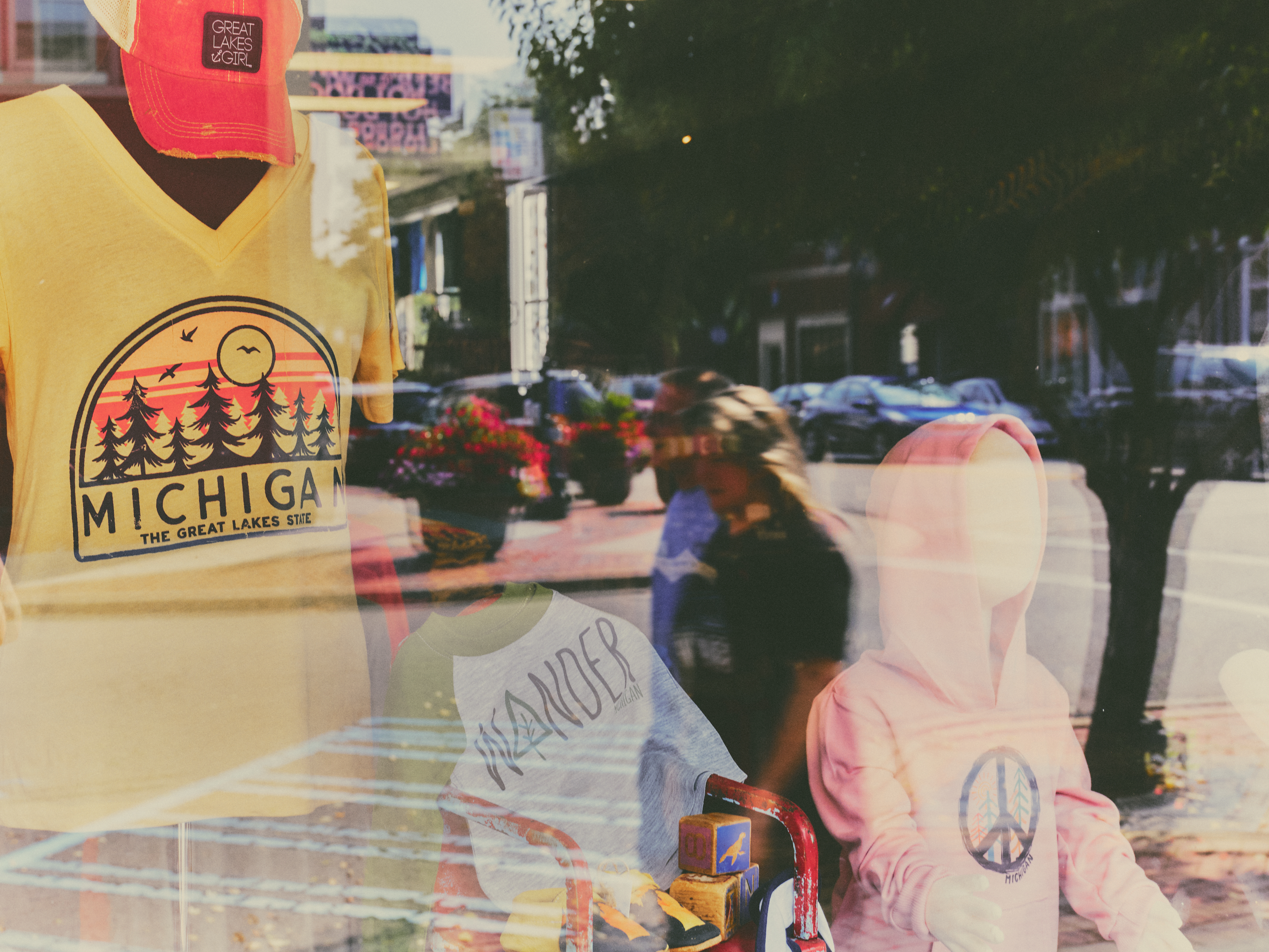 I was there on a Saturday morning, and the downtown was busy, with cars parked everywhere and lots of people walking in the area. Some were heading for the farmer’s market, others to their favorite café or smoothie place for a morning beverage. A few found a quiet place to chill. One family headed into a place that promotes Michigan.