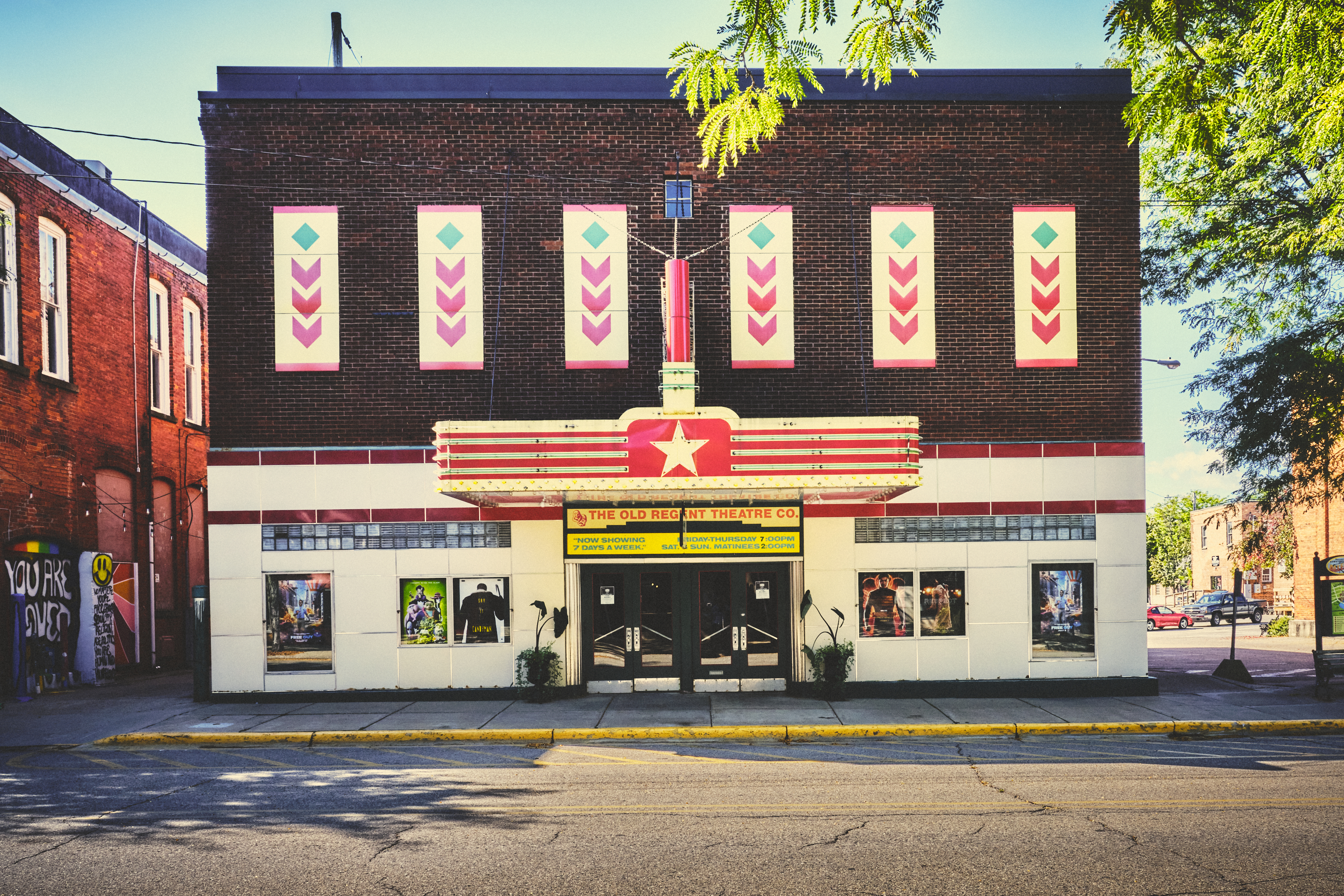 Something of the artsy can be seen in the lovely old theater, which has been rebuilt more than once. I spent some time photographing it and the alley beside it. The “You Are Loved” graffiti by the theater suggests a vein of progressive-inclusive sentiment in Allegan.