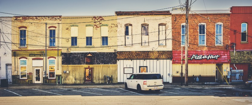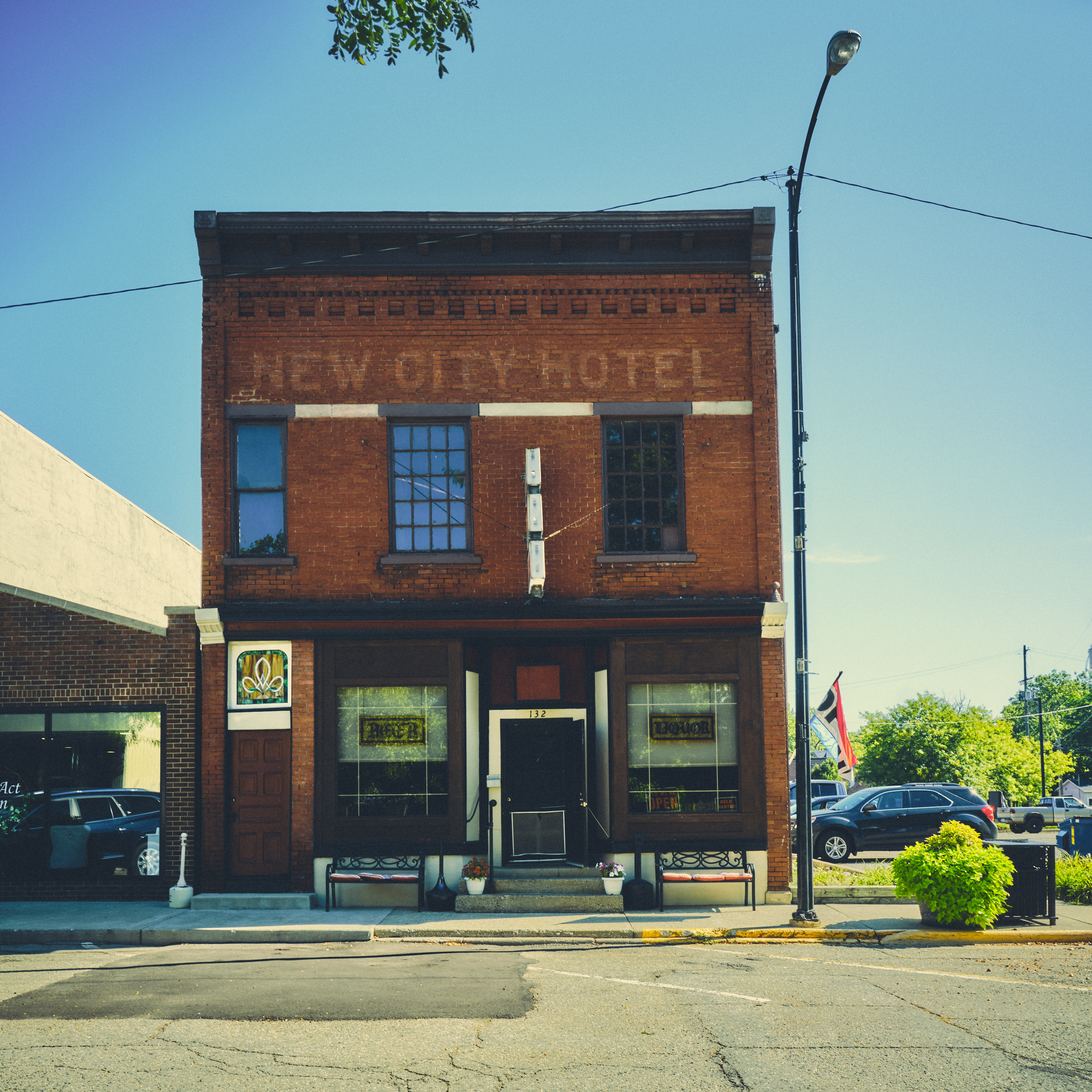 Allegan’s business district is chock full of wonderful old buildings, like the I love the building that houses “The Sassy Olive,” an old hardware store become hipster headband store. An old hotel–the first image below–and an old livery are now pubs. Here are a few of my favorite buildings, some from the front, others from the back. The third image is my favorite in this series. The last is a panoramic shot stitched together from three photographs. I love the beat up Pizza Hut sign. It completes the odd mix of architecture in the connected buildings.