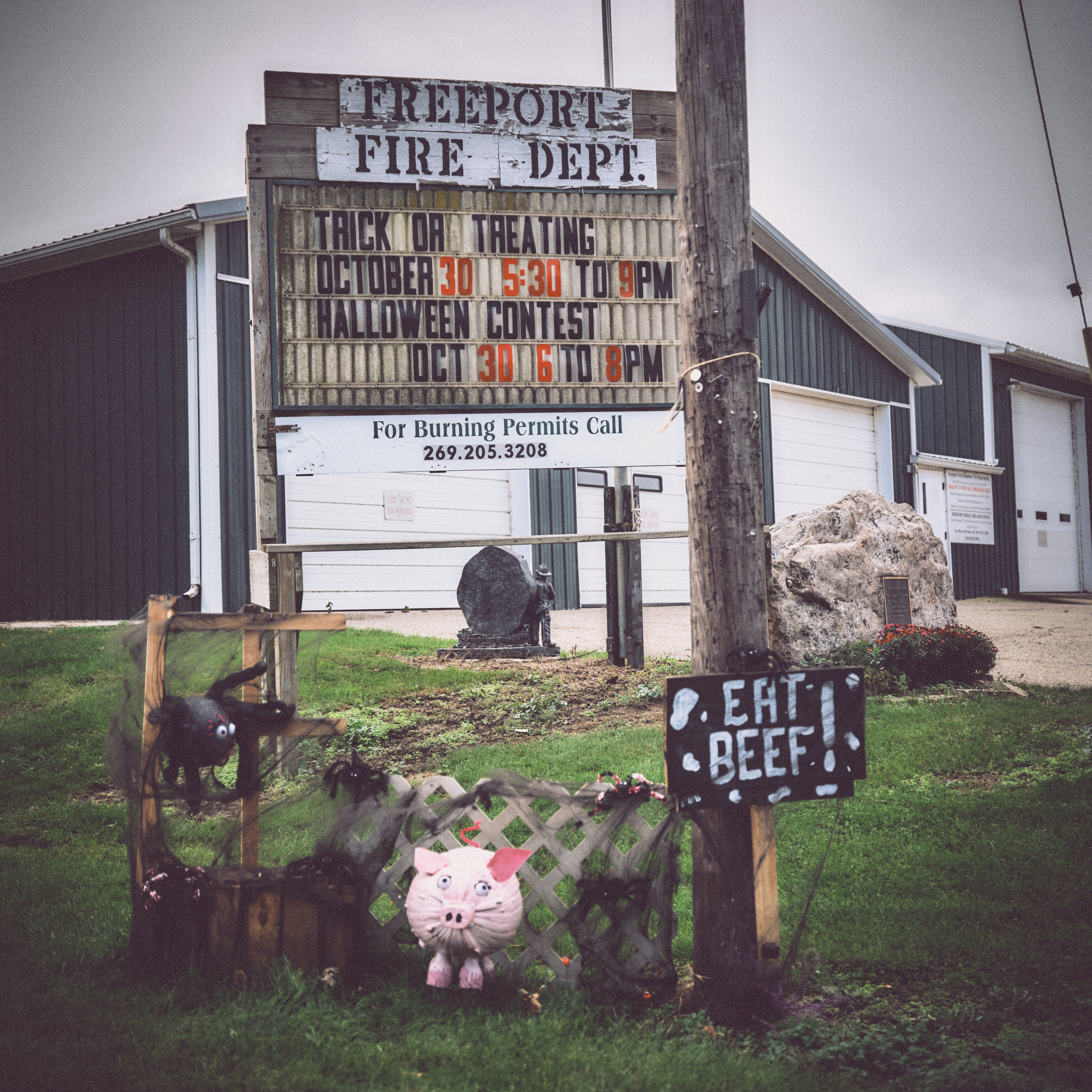 When I chose to go to Freeport it was a kind of random decision. It also was serendipitous. There are signs in Freeport of economic difficulties, as in many small towns in Michigan and the wider Midwest–e.g., buildings in rough shape and/or for rent. But this town has life and it’s interesting.