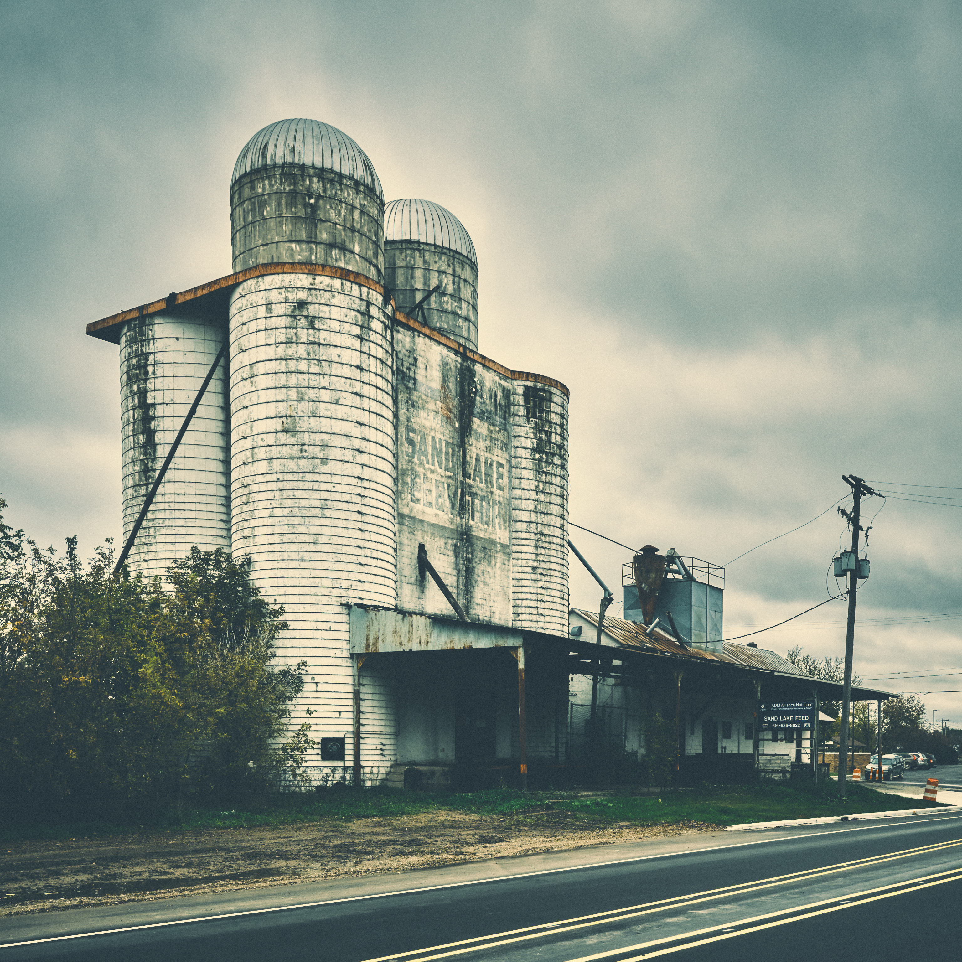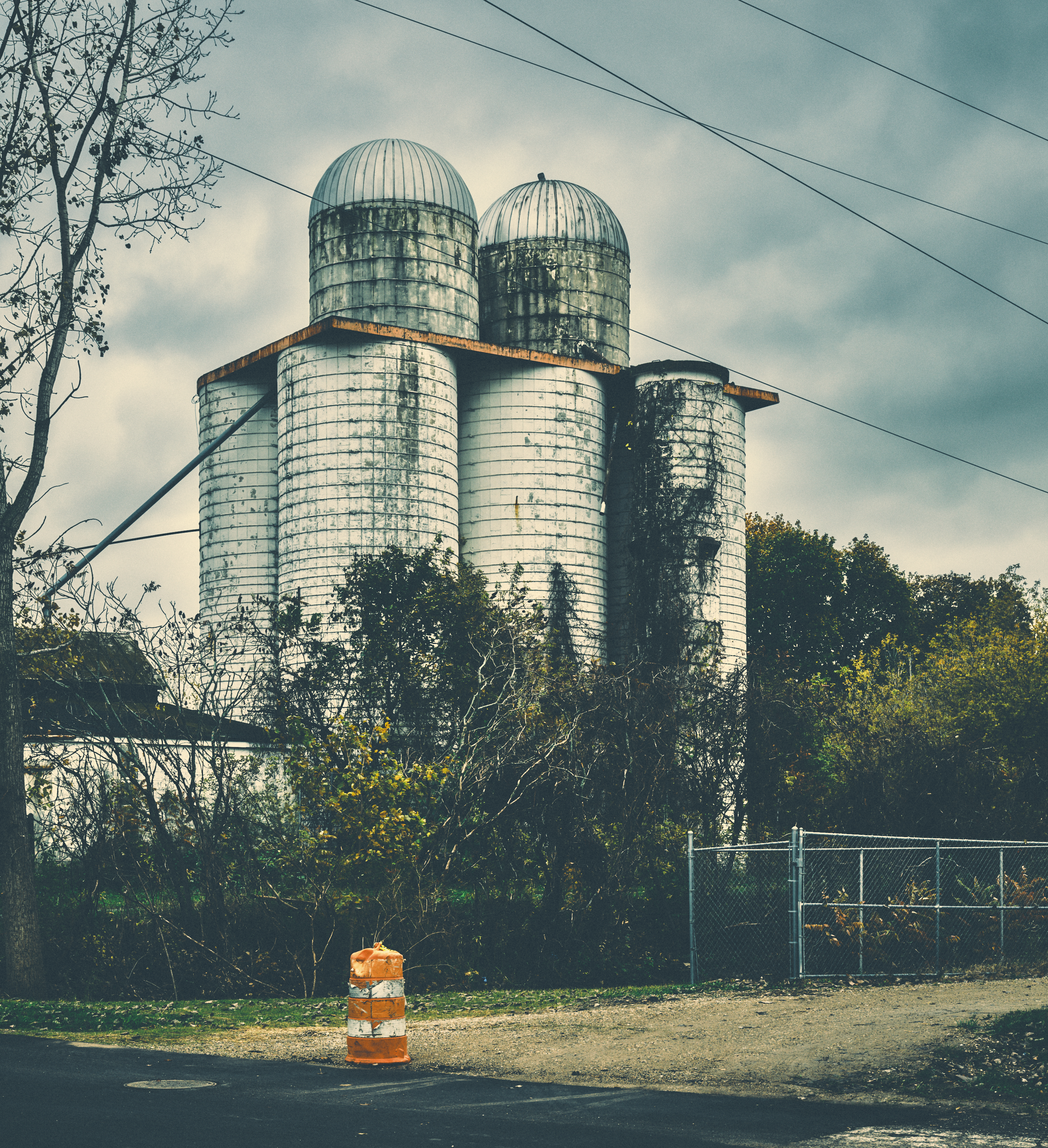 The two big features in town are the water tower and the feed mill. The latter looks to have shut down relatively recently. I’ve always found water towers interesting. As a kid, apparently, I had a phase in which I obsessively pointed them out to my parents whenever I saw them. The first image below shows off fall colors as well as the water tower. The gallery that follows shows a variety of shots of the feed mill.