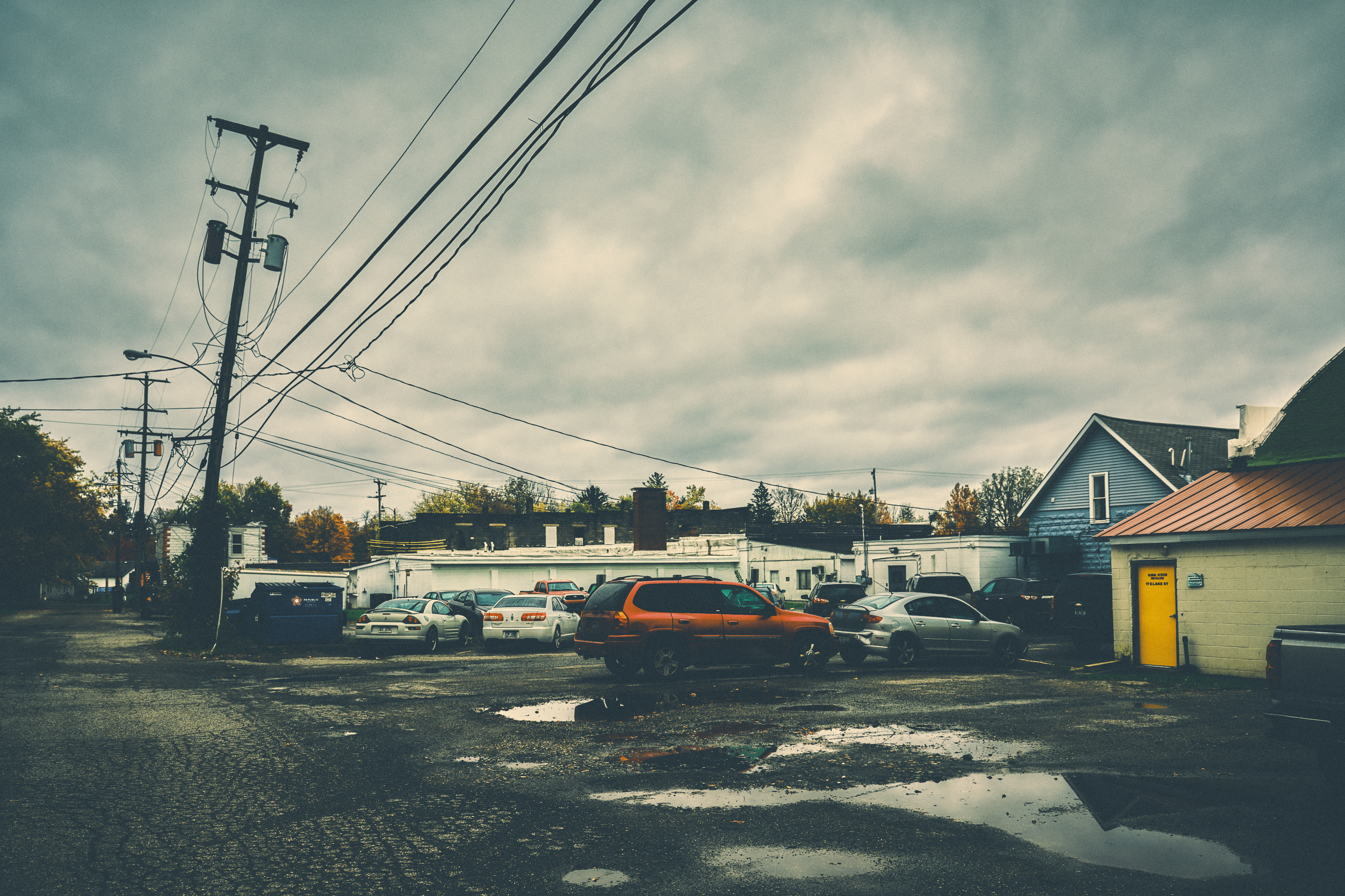 The last two images show some of the backside of the stores and restaurants on the main drag in Sand Lake. I liked the aging beauty of the white building with the red trim bricks on the corners. And I was struck by all the cars parked behind the buildings. It’s a small village, but it was a busy one when I visited on Saturday morning.