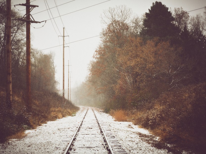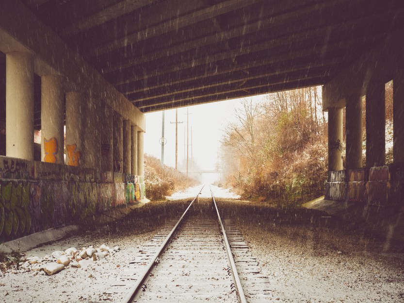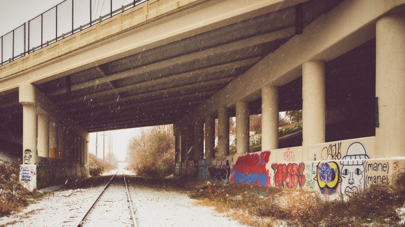 This week’s images are of a bridge–well, two bridges–and some railroad tracks between Grand Rapids and Ada village. I was attracted by the colors in the graffiti, the lines in the tracks, bridges, and utility poles and lines, and the new snow.