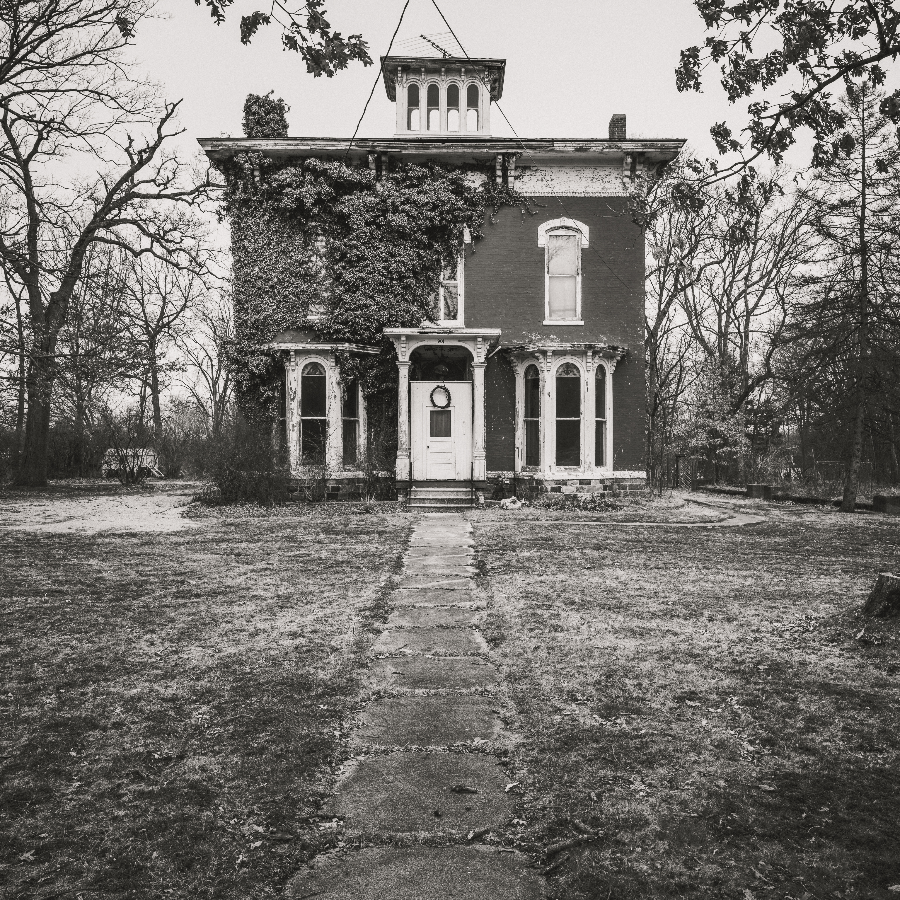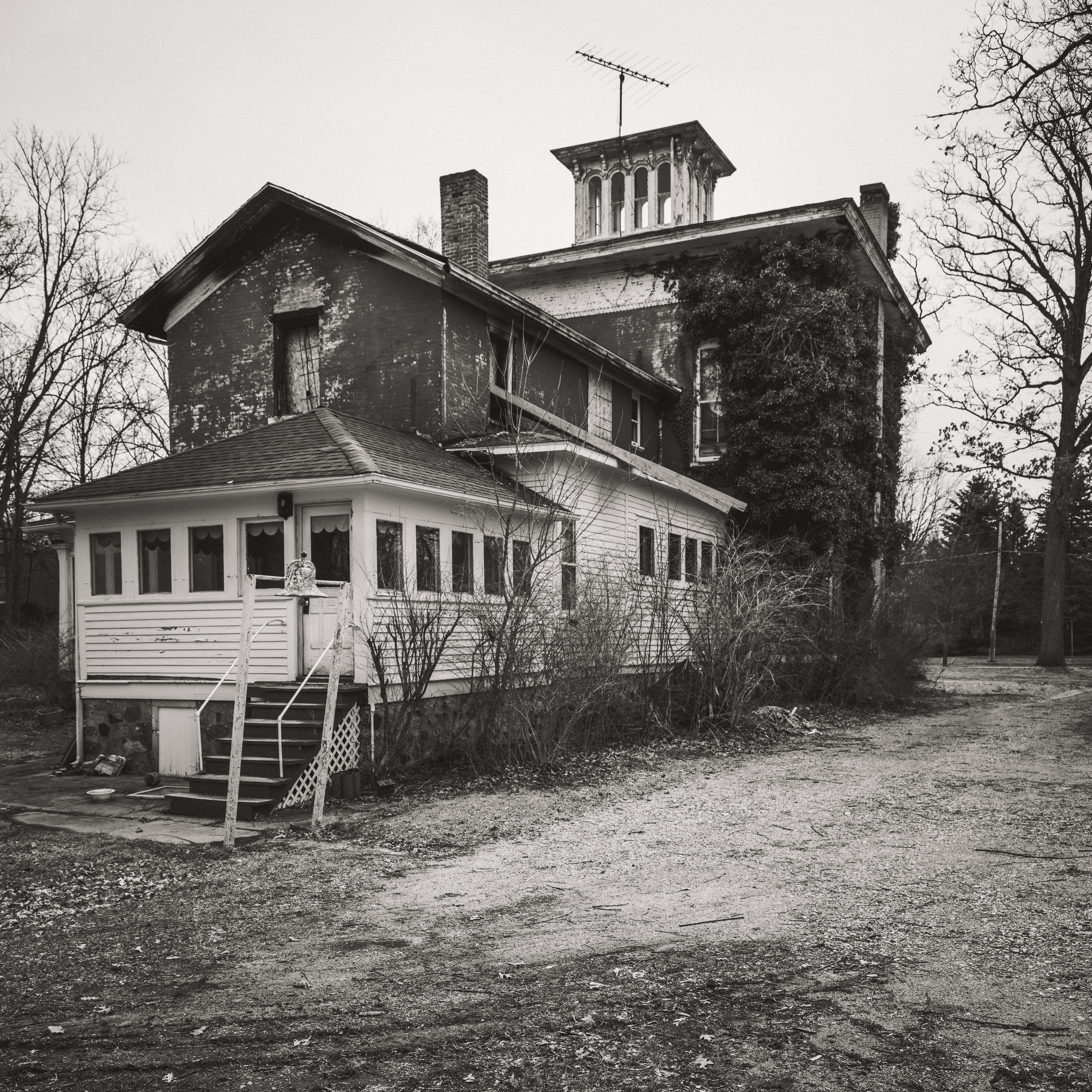 I thought I might spend a few weeks, perhaps more, photographing old (or, if you prefer, “historic”) houses in small towns. This glorious old wreck is in Hastings, Michigan, about 40 minutes southeast of Grand Rapids. The town has a lot of pretty Victorian-era homes, some in good repair, others beat up. I wonder if they date to the heyday the logging era in the town, as in many Michigan towns.
