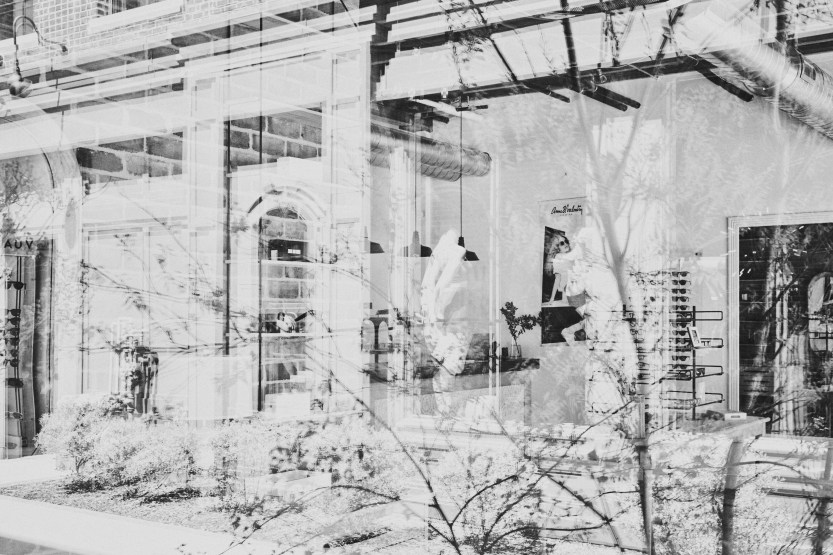 My eye is drawn to glass, whether windows, doors, or mirrors, and to the way they visually mix up insides and outsides. We learn to distinguish inside and outside, habitually, in day-to-day circumstances. Photographs present us with complicated visual fields as they are.