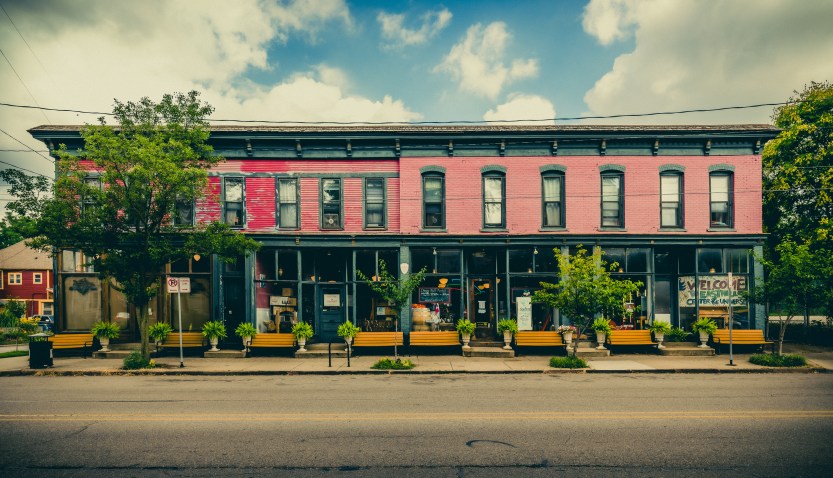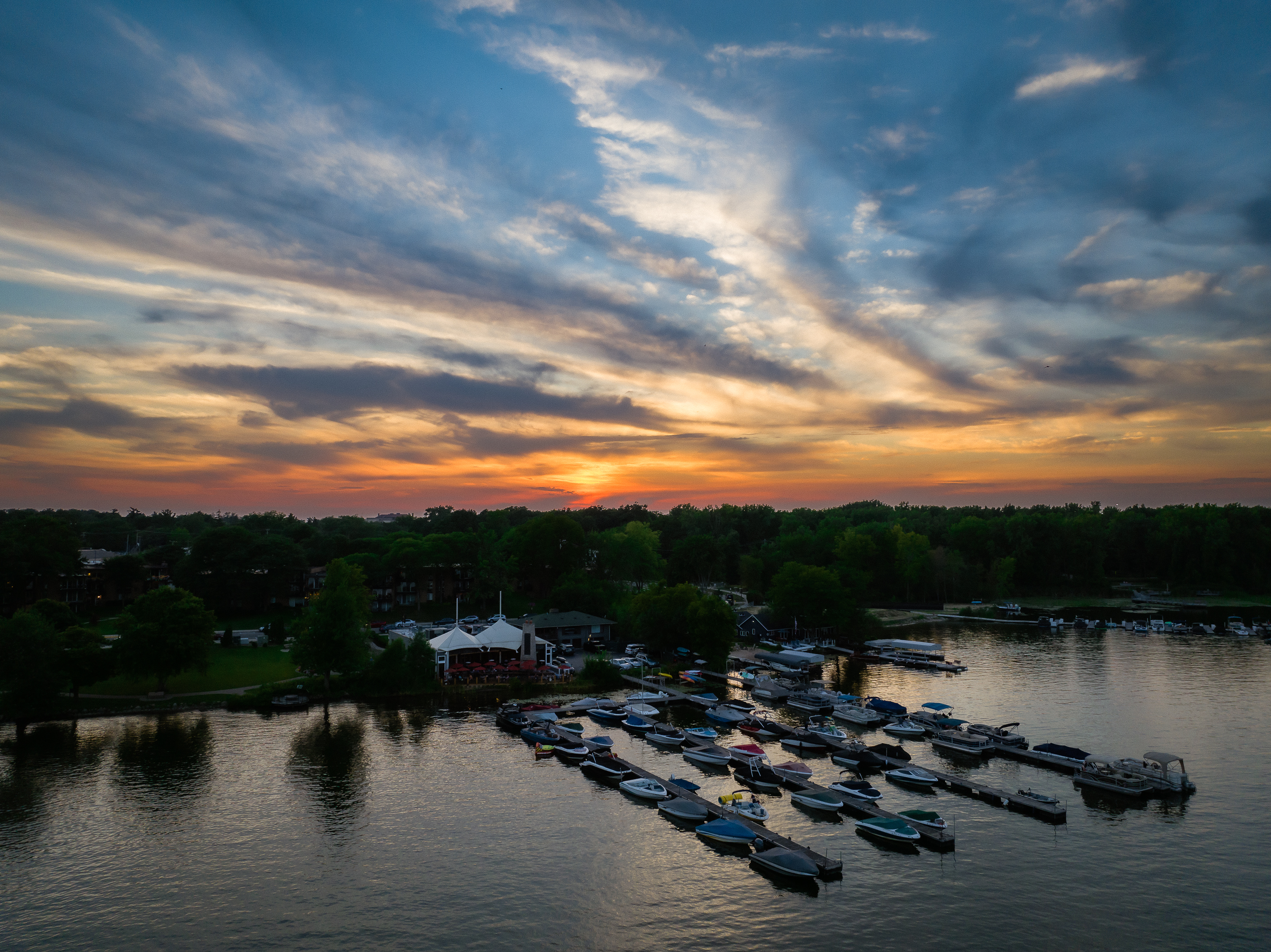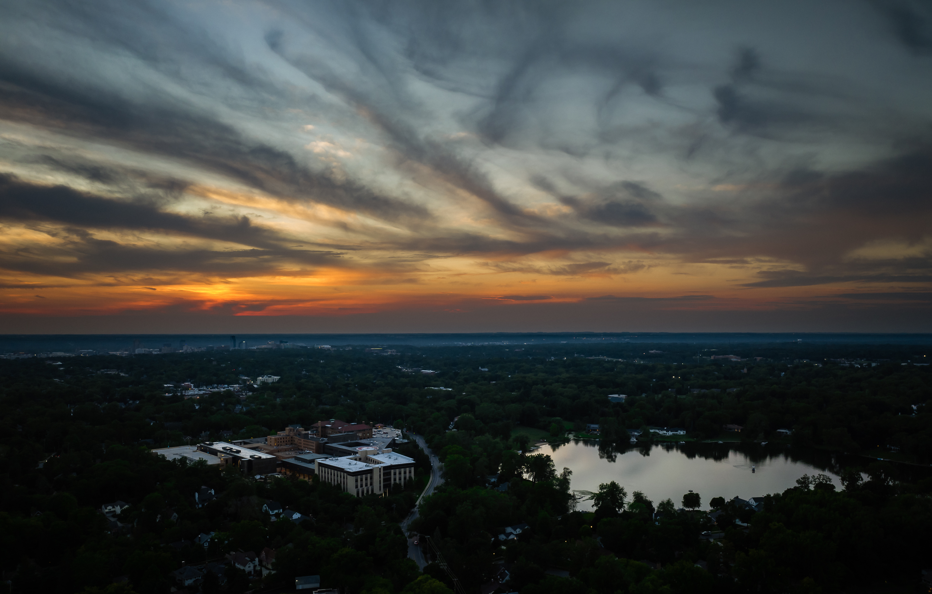 Here are my three favorites from East Grand Rapids. The first image shows off Reeds Lake, particularly a dock with boats and a restaurant. The colors are nice, and the image feels like the best of summer. The second and third images feature the business district in East Grand Rapids–AKA “Gaslight Village.” In little further west you can see a hospital, and in the distance downtown Grand Rapids. The sky was incredible.