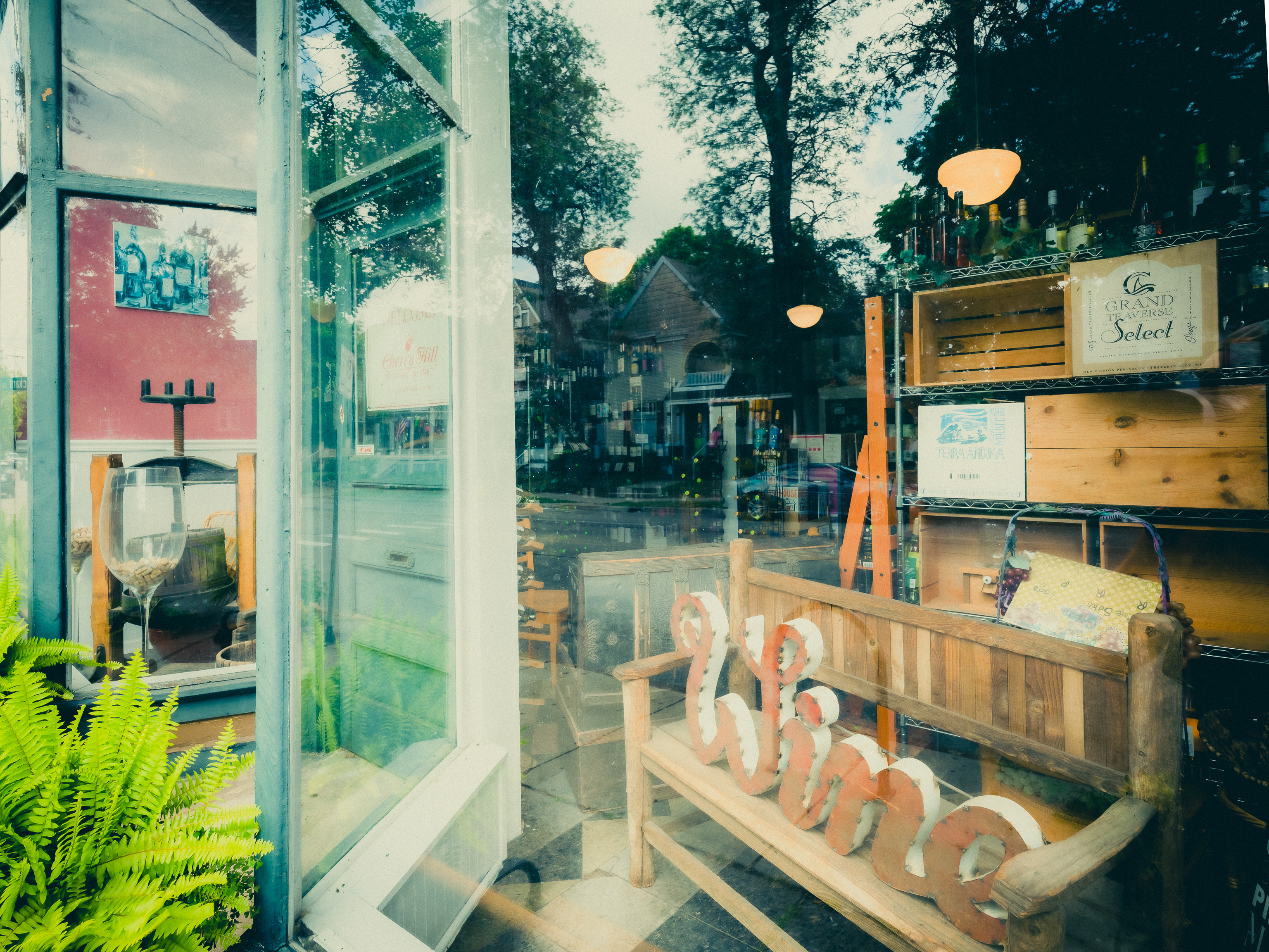Finally, a couple of images from Cherry Street a bit further West, just past Eastern. The old building is a classic from the 1890s. The window-reflection image shows a bit of the street.