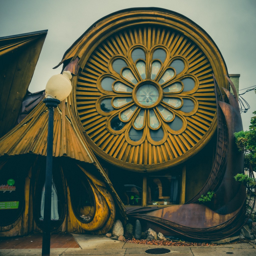 A good example is a building that has hosted a variety of kinds of businesses over the years, currently a restaurant–Chez Olga’s–that advertises Caribbean heat. Next to it is Billy’s Lounge, a venerable bar and concert venue. Chez Olga’s building has a bit of hippy and a bit of Hobbit to it. Maybe a bit of Grimm’s fairy tale.