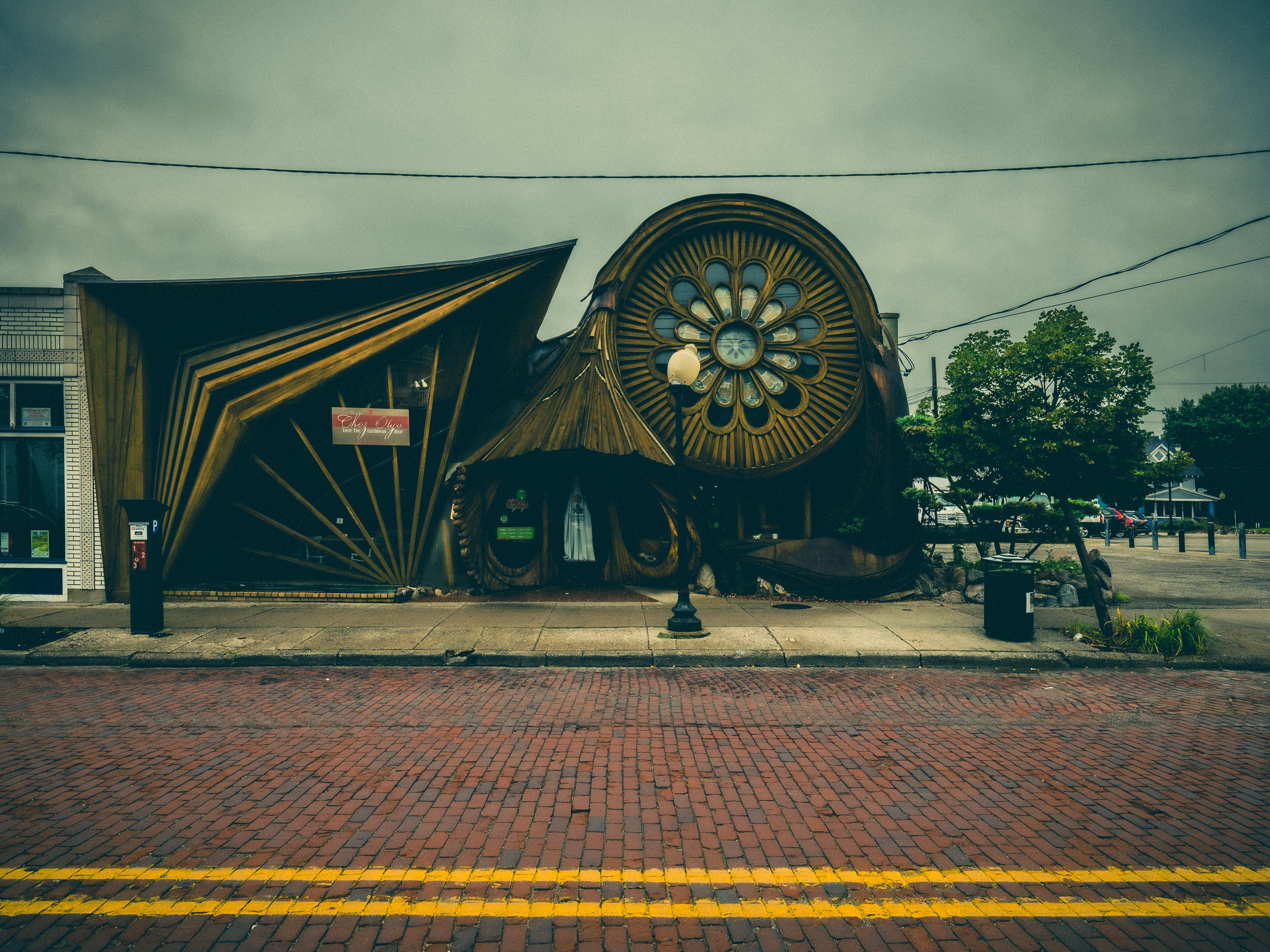 A good example is a building that has hosted a variety of kinds of businesses over the years, currently a restaurant–Chez Olga’s–that advertises Caribbean heat. Next to it is Billy’s Lounge, a venerable bar and concert venue. Chez Olga’s building has a bit of hippy and a bit of Hobbit to it. Maybe a bit of Grimm’s fairy tale.