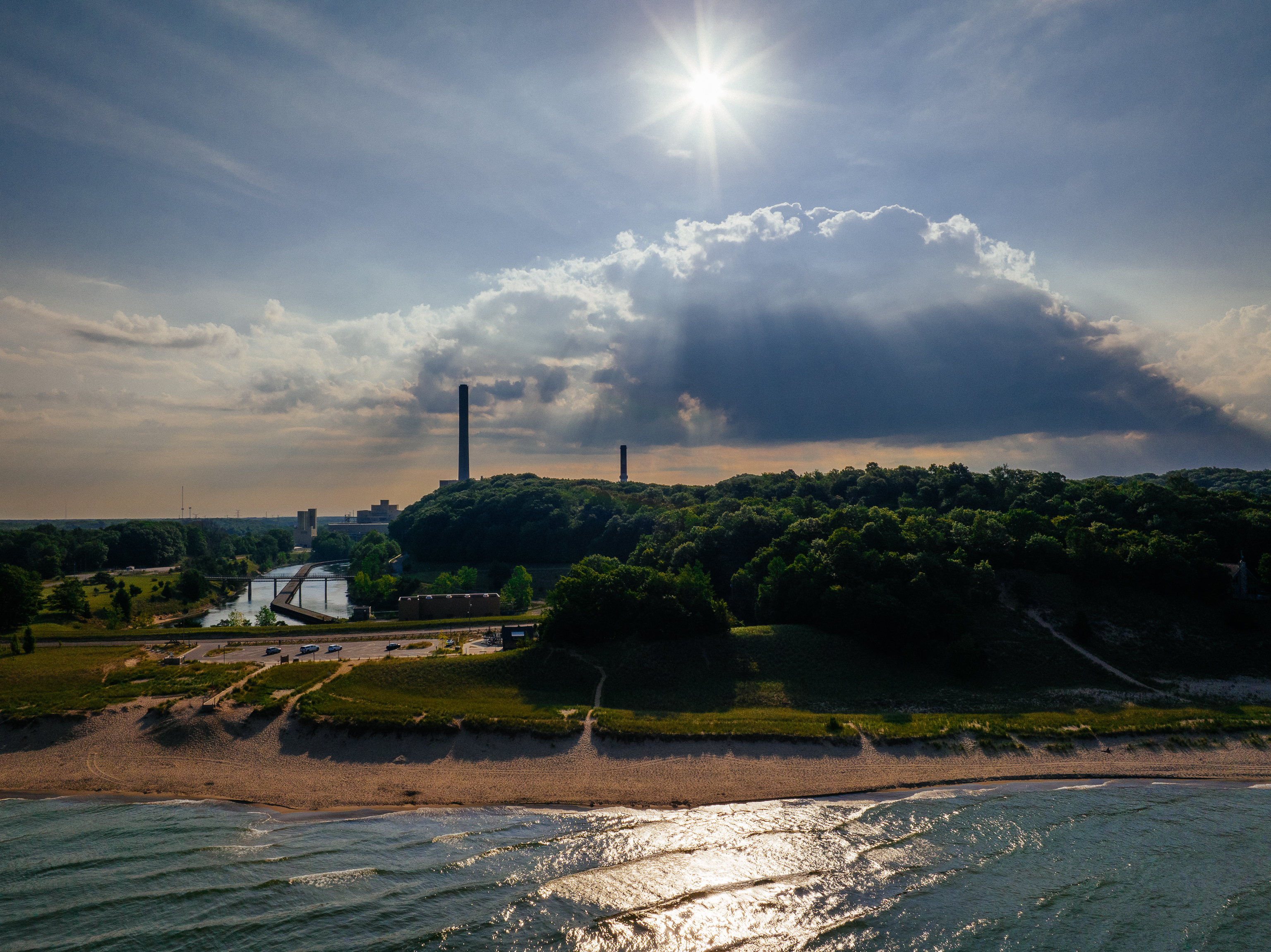 There are a lot of cottages, grander summer homes, tourist venues, boat launches, and beaches in the area, many a walking distance from the “dynamo.” The plant is scheduled to be shut down in 2025, and Consumers Energy shifts to environmentally friendlier facilities. There are large ponds where the plant put coal ash. That ash in such storage ponds, of course, has the potential to leak into the water table. The Sierra Club found evidence of contaminated water in a few nearby homes (though it’s not clear that the plant is the source of the contaminated water. And CE has been replacing ponds with concrete tanks.