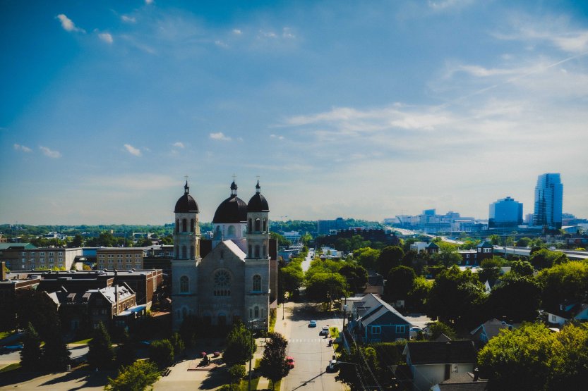 This weekend I went back to the old Polish Catholic immigrant neighborhood near the confluence of highways 131 and 196 on the West Side of Grand Rapids. Instead of images from the ground, I photographed St Mary Church and the Basilica of St. Adalbert with my DJI drone. I also got images of the old Widdicomb Furniture factory and the confluence of 196 and 131.