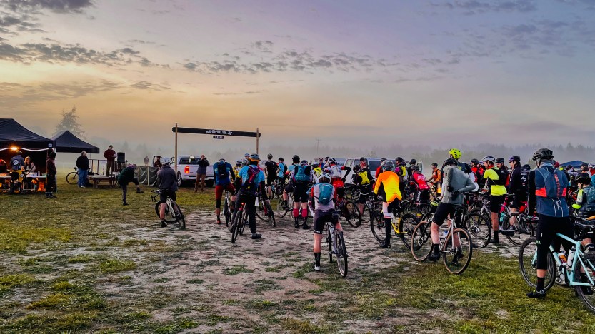 Last weekend my wife and I went to St. Ignace, which is just over the Mackinac Bridge in the Upper Peninsula of the Michigan. She went to right a 166-mile gravel race. I did photography, mostly with my DJI Mavic 3 drone. Here’s the crazy people, about to start their “fun” at 7:30 AM.