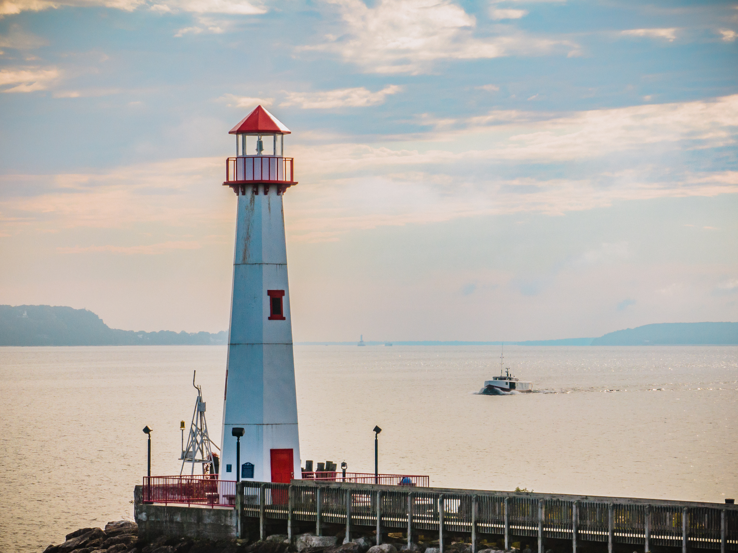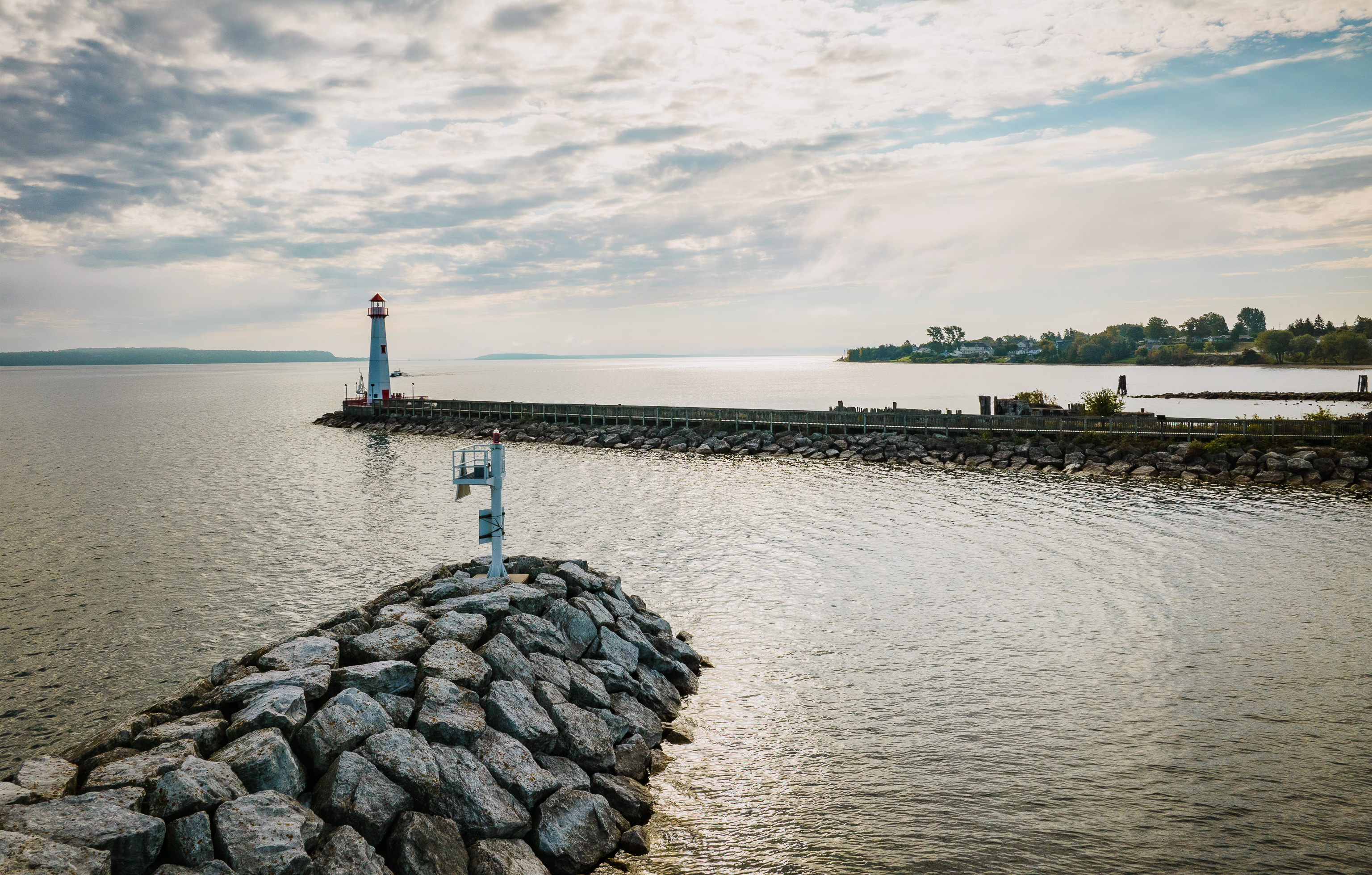 In the second image, looking northeast, you can see Canadian shores in the distance. My iPhone picked up a Canadian signal tower, which triggered a $5 charge for me from Verizon (expletive deleted). My wife’s phone did the same when she biked close to the shoreline.