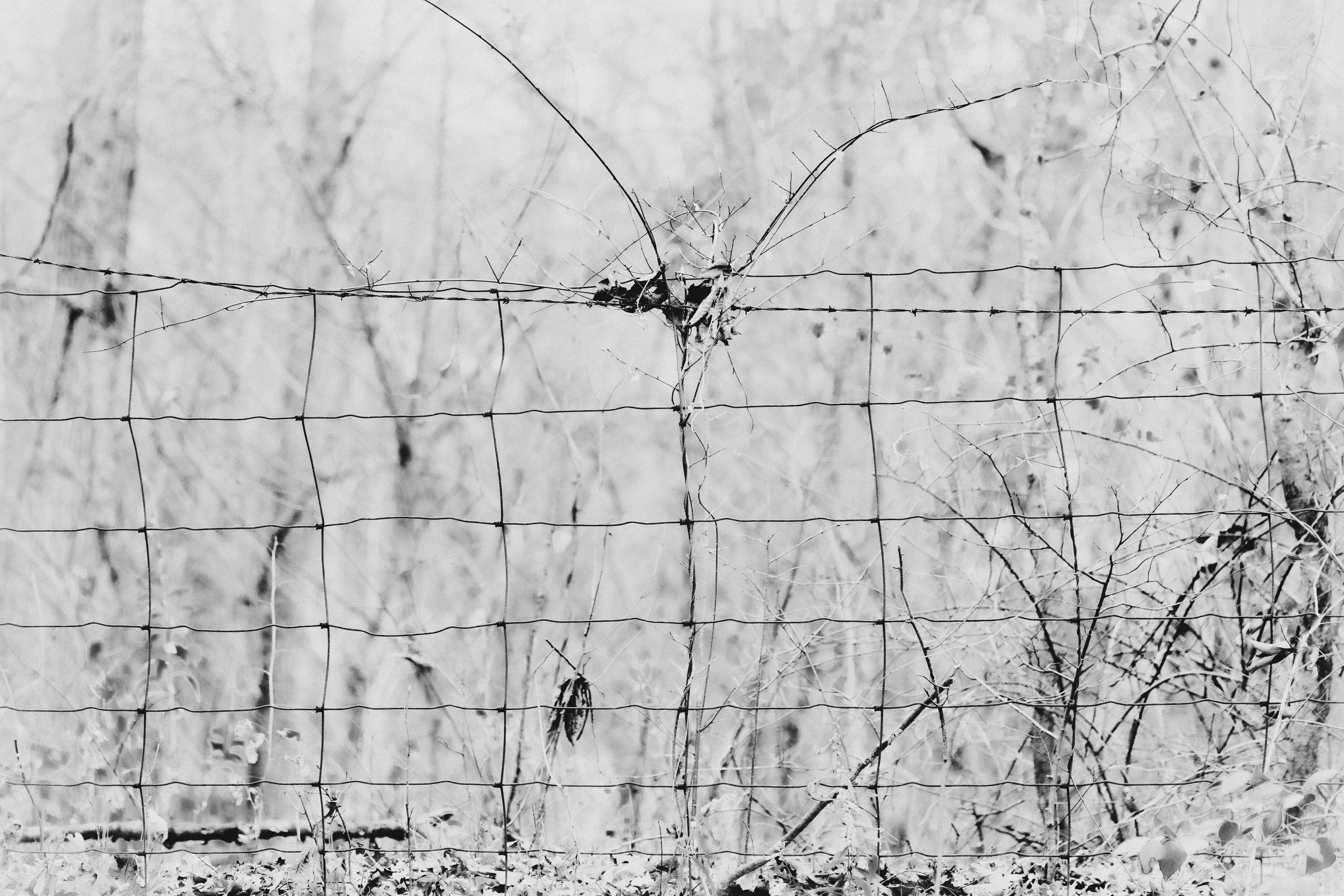 It was more things that catch my I as I walked that struck me as the more interesting images. In one case it was the fencing on one side along the tracks. The brown colors of fall leaves were distracting, so I went black and white with this image. I like the strong lines of the fencing in contrast to the dappled background trees and shrubs.