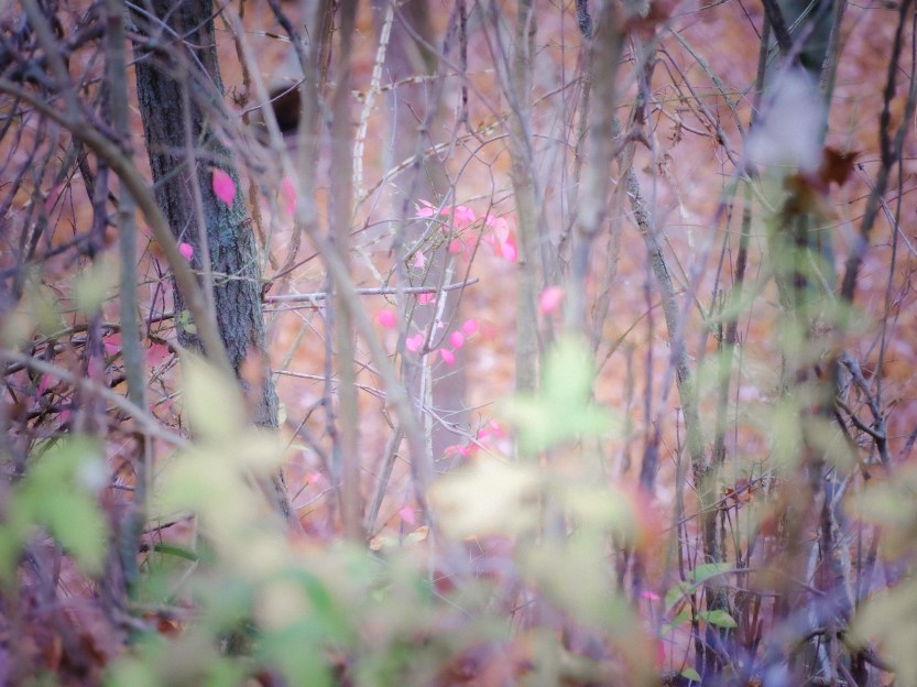 This weekend, I took a walk along some railroad tracks near where I live. As it turns out, mostly, I did not photograph the tracks. Or rather, those weren’t the photos that I found interesting. But just to prove that I did walk along the tracks, here’s an image. It’s actually a nice scene, even with the leaves mostly down.