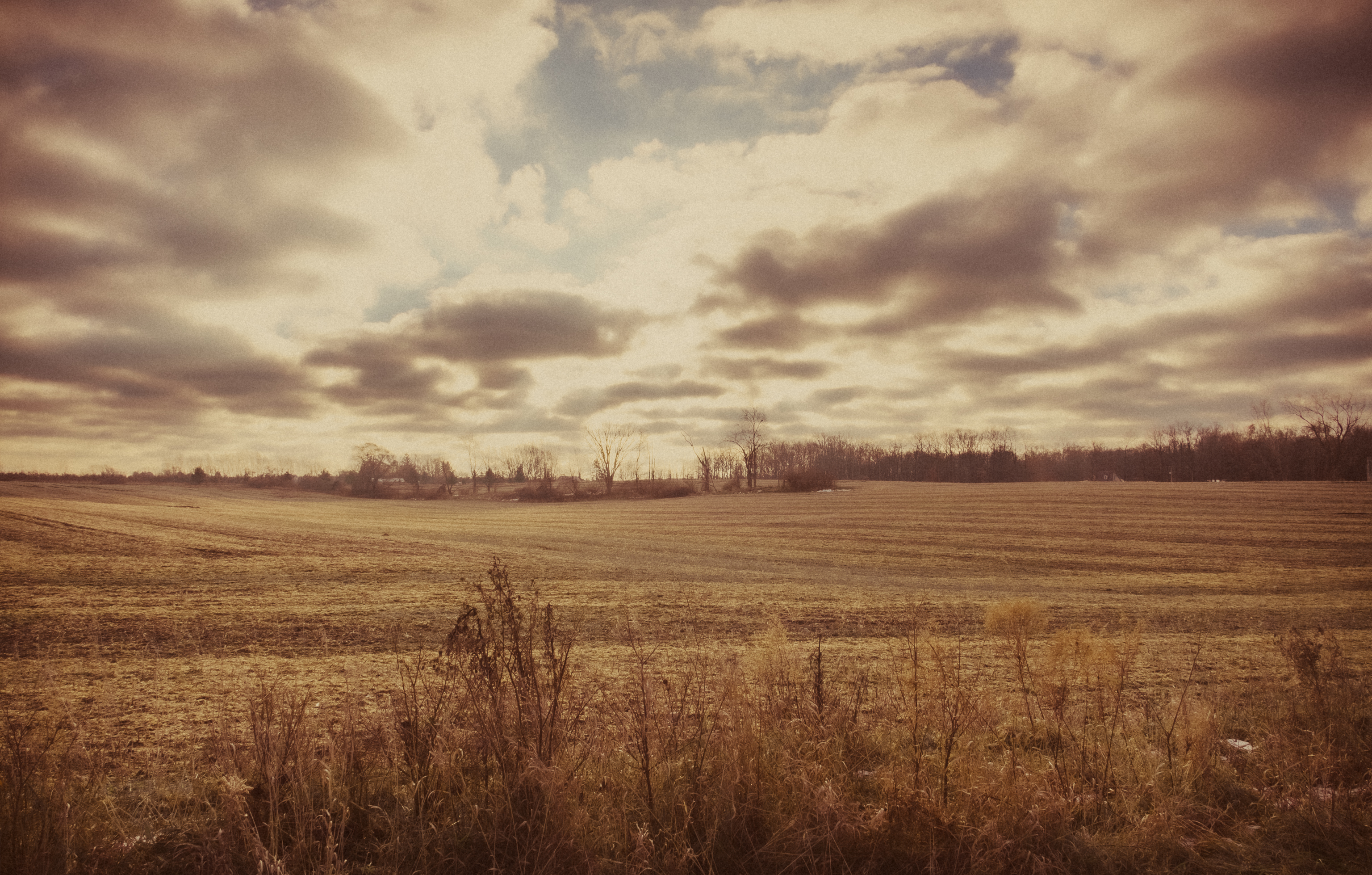 We’ve had our first major snowstorm of the year, and it was a doozy (to use a technical term). More than a foot of the pretty white stuff, most of it now melted. So, I thought I’d photograph the transition from autumn to winter–what the land looks like after harvest but before fields are covered in snow for the duration of the winter.