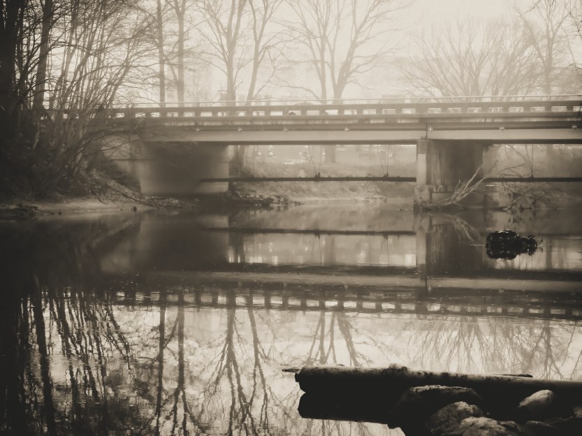 This past weekend I took a photo walk in the area around the dam in Ada Village, a few miles east of Grand Rapids. There was a heavy fog with occasional light rain. I was not sure what if anything I’d get, but the images turned about to be really interesting.
