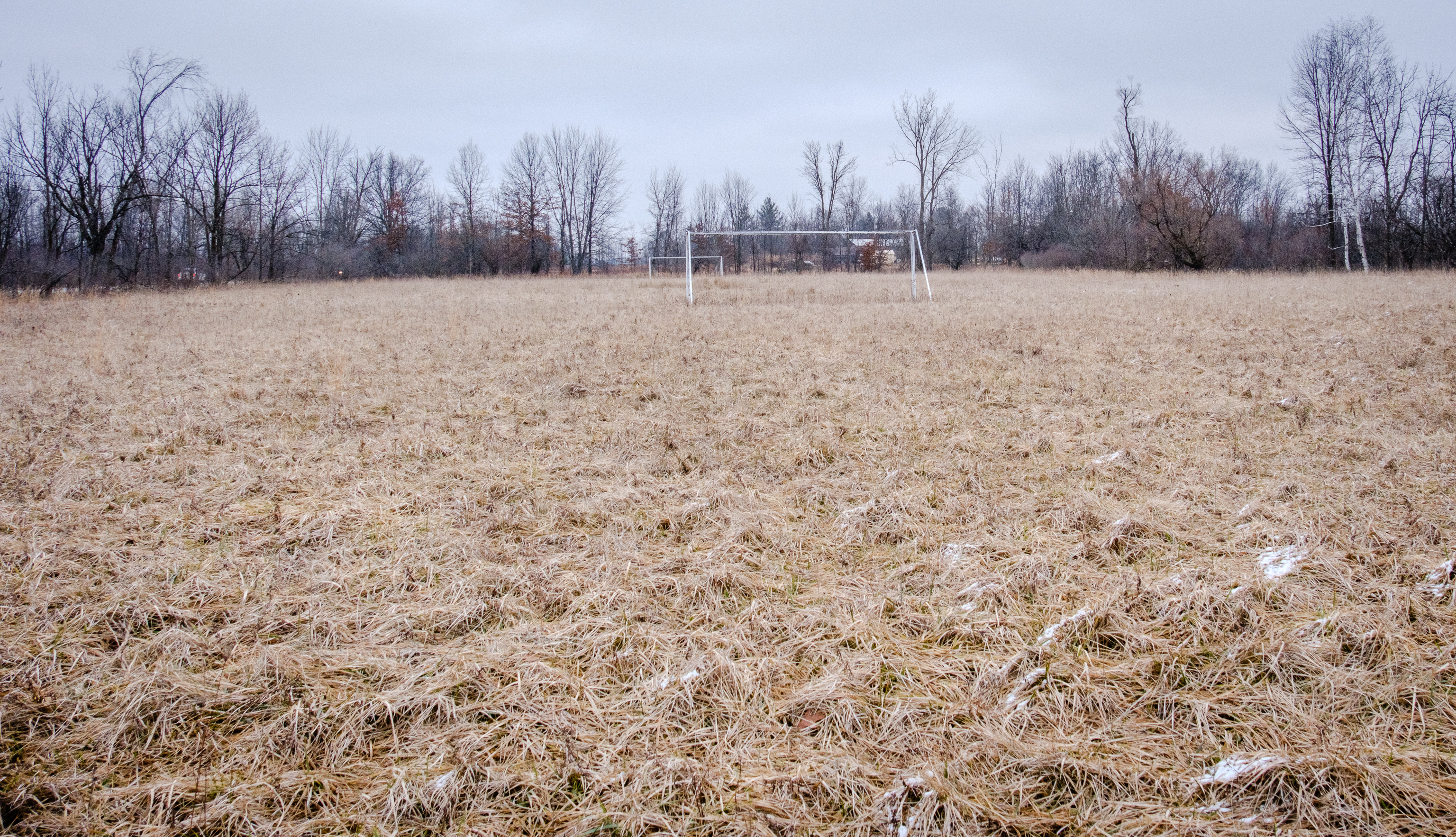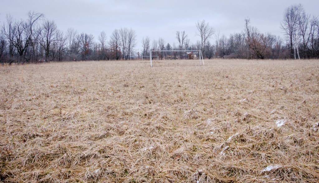 I’ve noticed this soccer field before on Northland Drive, north of Cedar Springs. This weekend I stopped for a minute to photograph it. You’d never guess it was (had been) a soccer field other than the goal frames being there. Otherwise it looks more like a fallow farm field.