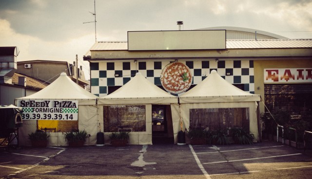 First a few images that will look familiarly Italian. The countryside, near a farm to table restaurant where we ate a fantastic six-course meal. A man gesturing at some people outside a pizzeria. And people walking through hundreds-of-years-old covered walkways with modern stores and other businesses.