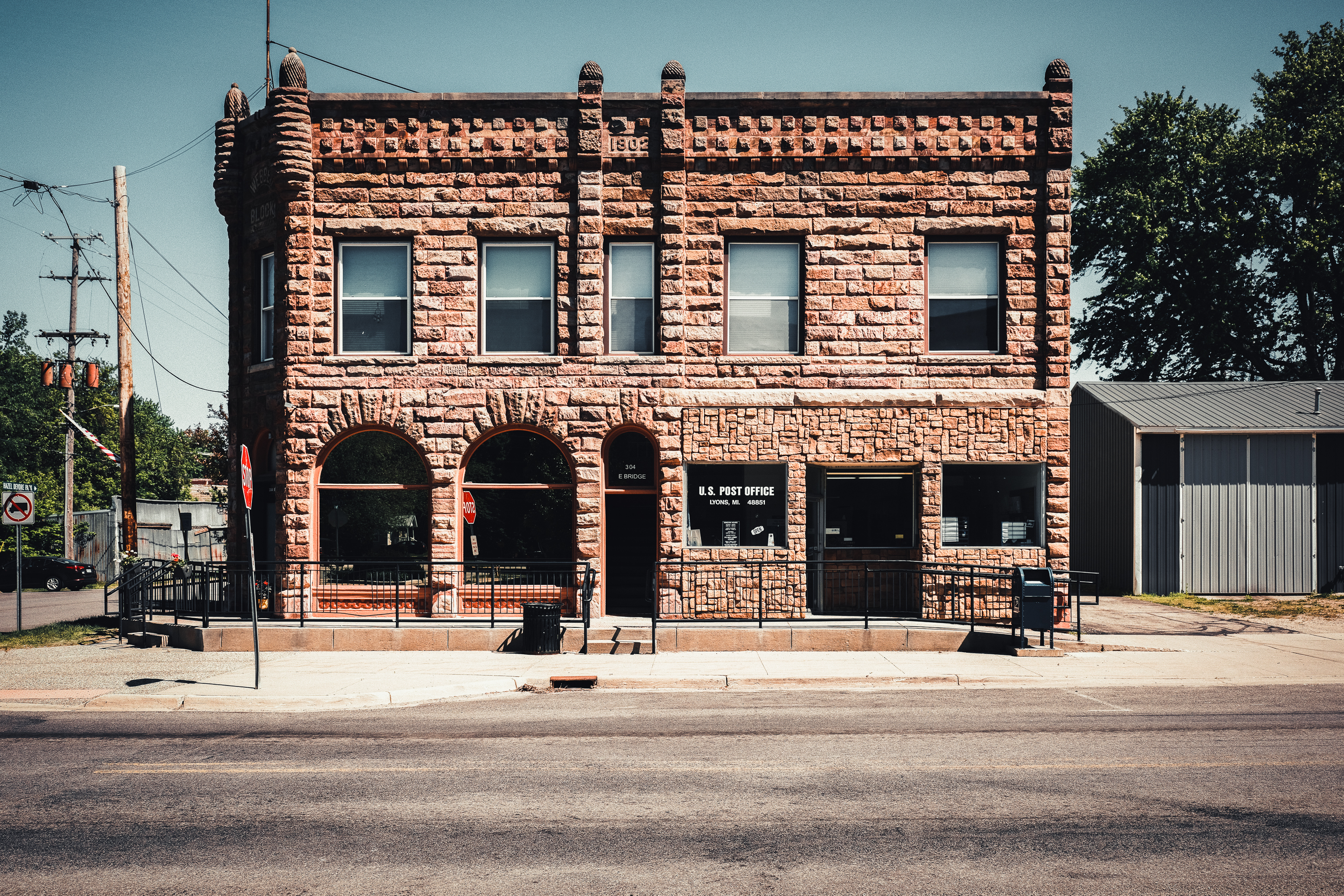 Two years in, I’m still finding a few towns in West Michigan–increasingly broadly defined–to photograph. As always, what draws me is the mix of late-nineteenth and early-twentieth century Midwestern architecture and the signs of socio-economic stress and resilience in them. On Friday, I took the day off and spent some time photographing in Muir and Lyons, Michigan, two villages a few miles east of Ionia. The Grand River runs between them and curves through Lyons.