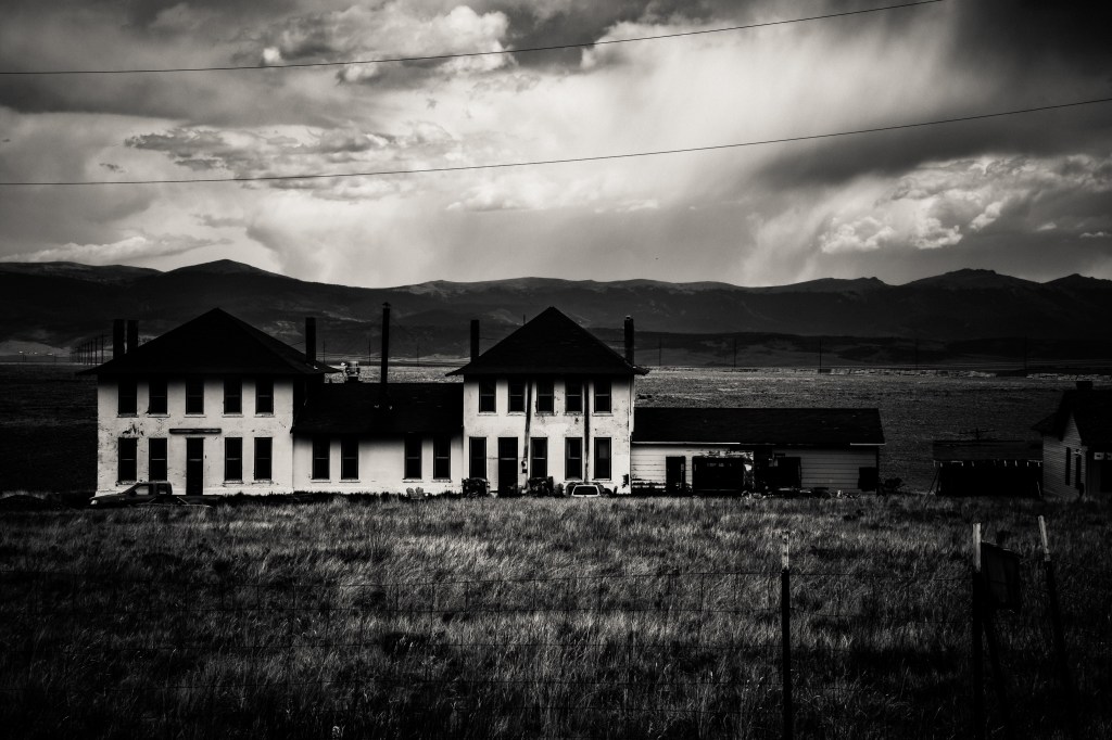From Como, a not-quite-a-ghost-town town 20 minutes east of Fairplay. A hotel that went out of business a few years ago. I am not sure if it’s being used or lived in, but it looks pretty derelict. The storm coming in made the mood. And my wife, riding the Great Divide route on a gravel bike, got caught in high winds and hail just south of Como.