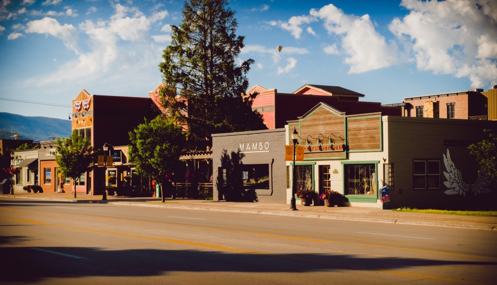 Encampment from the highway heading into the town from the West. It has a few businesses, including a great restaurant called Great Divide.