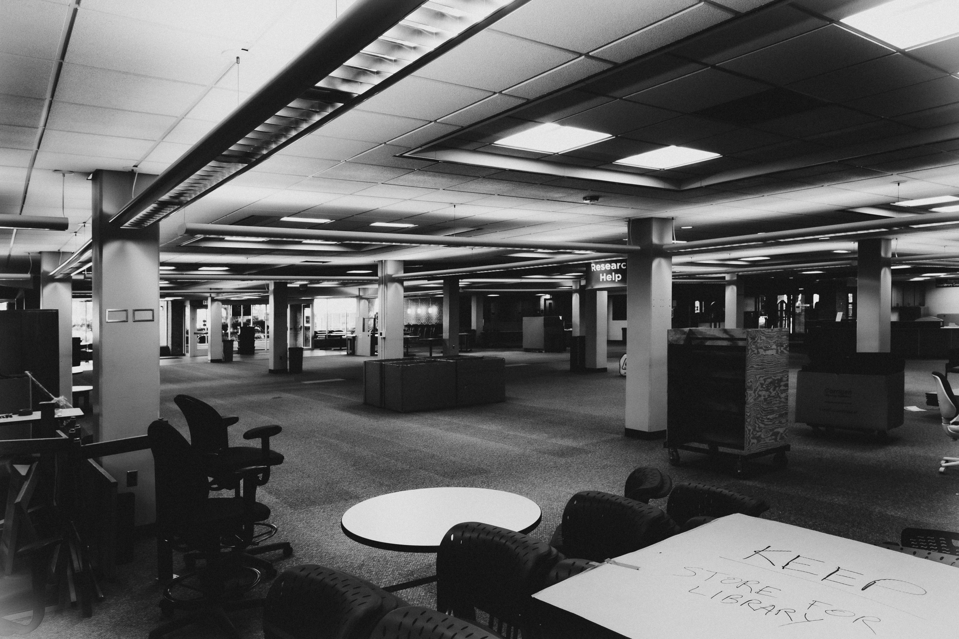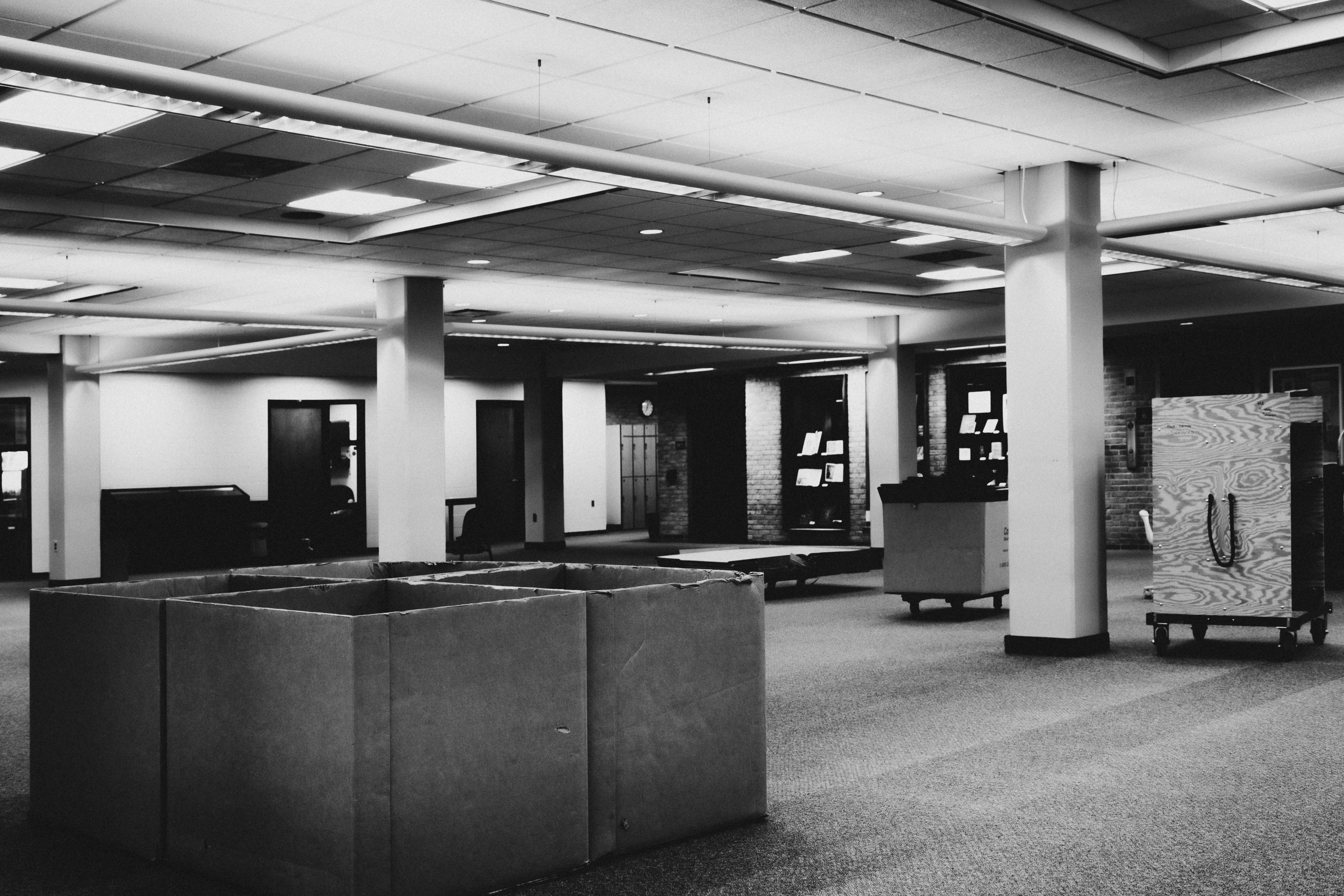 This weekend I went to the second floor, which is mostly emptied out and waiting for the demolition process to begin, in the next week or so. Here are a few images of the floor, in a moody black and white. [Click on the images to see larger versions.]