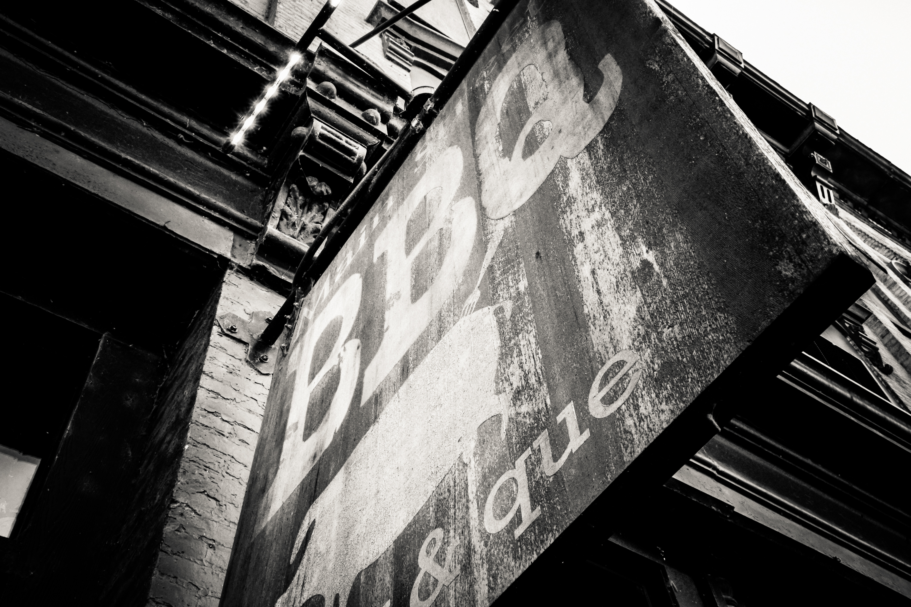 The sign below seemed to call for an image of it, rather than a one of the building with the sign merely an element in the photo. I like the forcefulness of the BW version, but also found the colors compelling, so I’ve included both.
