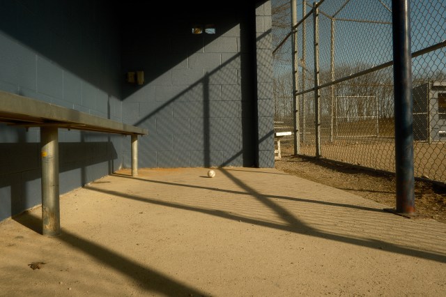 I am not a baseball person. This scene caught my eye, nonetheless, while I was walking in a local park. A clear sign that spring is not far away, one hopes. It looks like the ball has been waiting all winter.