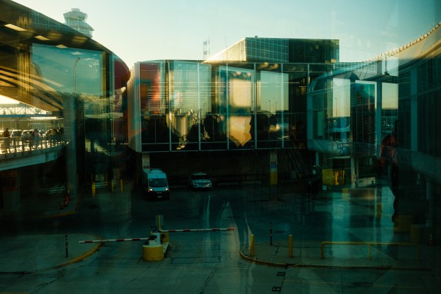 What captivates me about airports is the architecture, especially all the glass and reflections the glass creates, and especially when you have people come into the frame. My approach is to set up an interesting frame, with glass and reflections that mix up inside and outside or mix-up multiple inside spaces. Then, if it’s the right kind of scene, I wait for a person (or people) to go through or sit down. For all of the images below, I used a Kodak Portra recipe from Fuji X Weekly, slightly tweaking the resulting JPEGs’ contrast and shadows in LR.