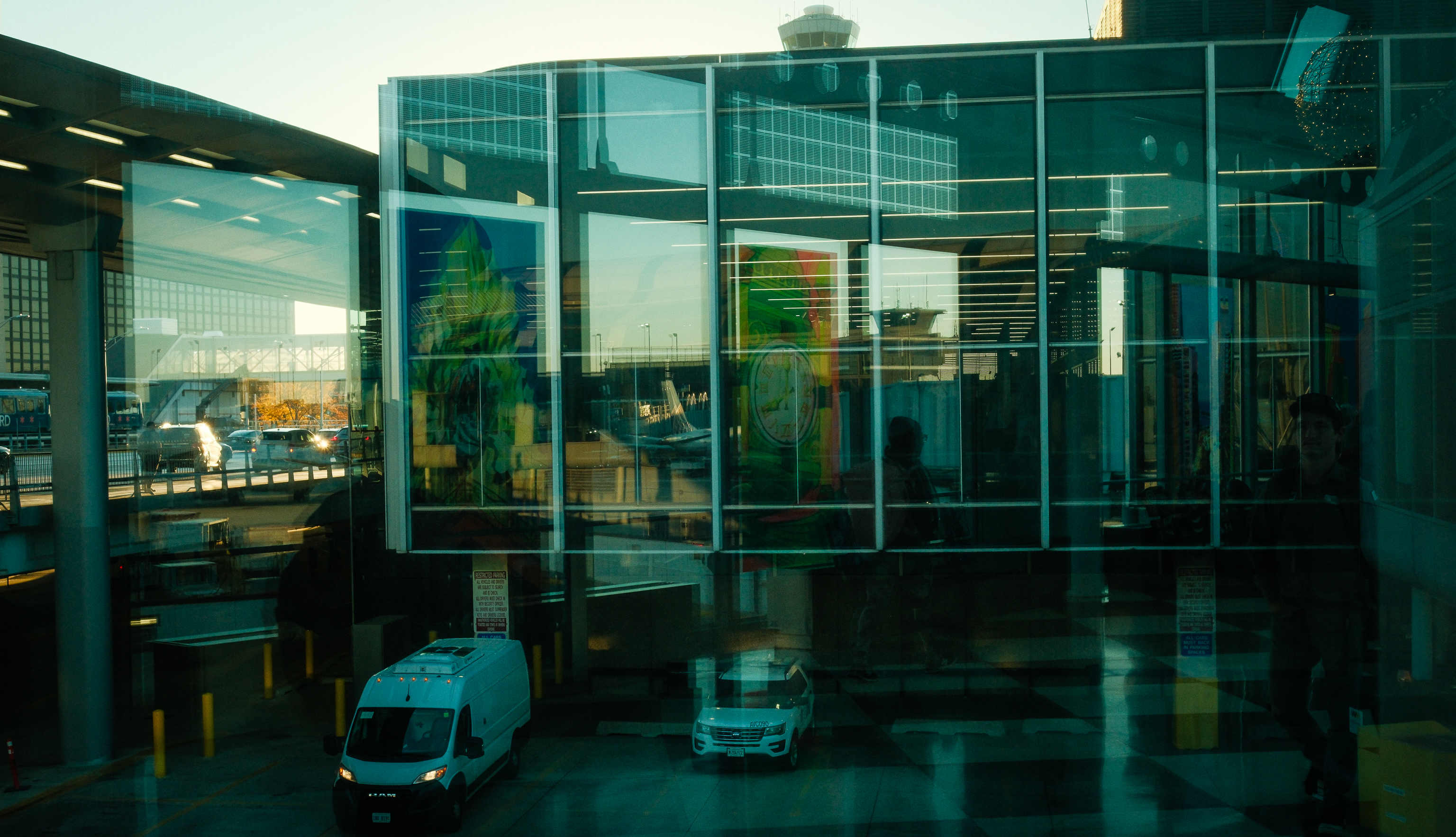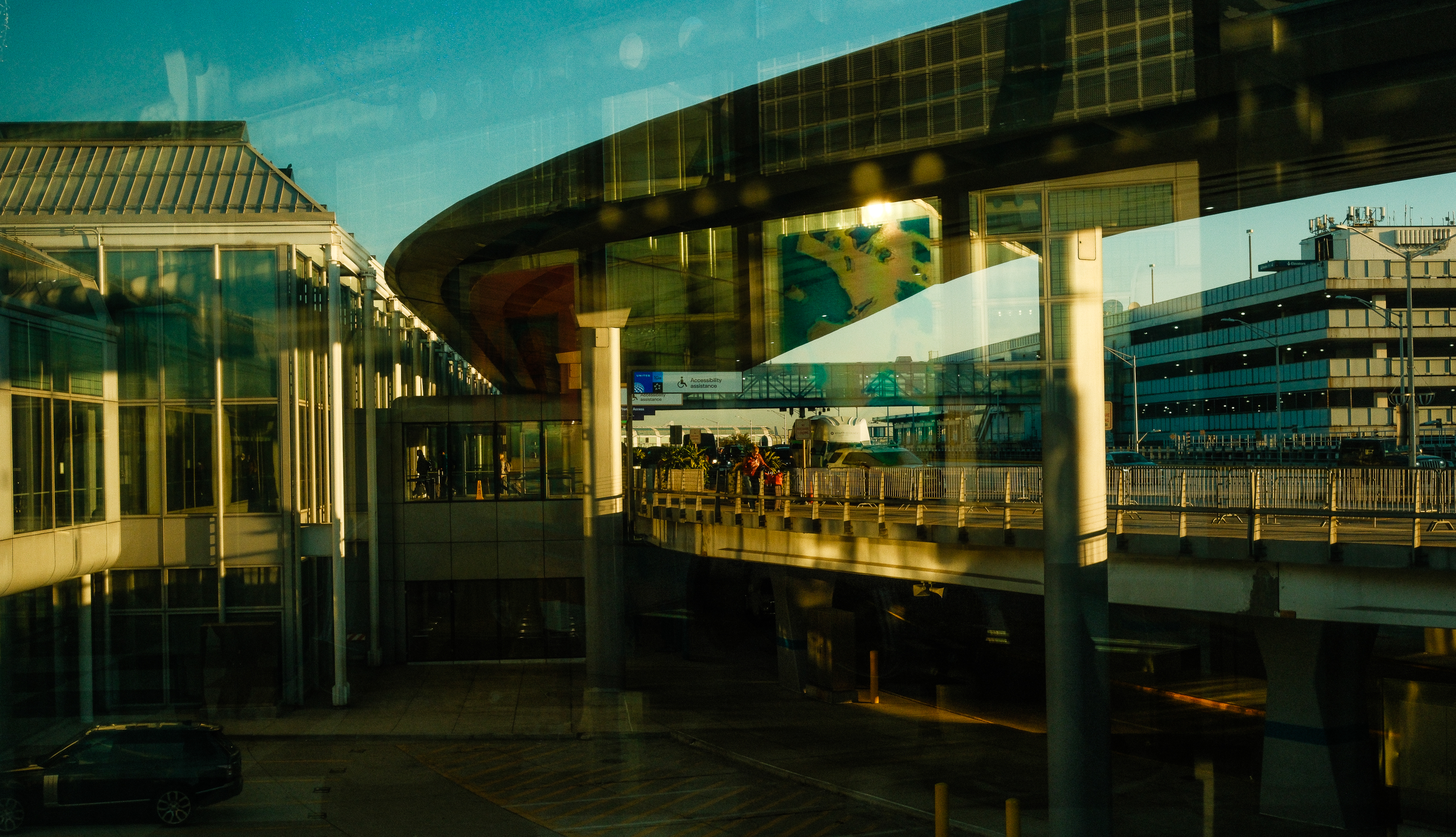 What captivates me about airports is the architecture, especially all the glass and reflections the glass creates, and especially when you have people come into the frame. My approach is to set up an interesting frame, with glass and reflections that mix up inside and outside or mix-up multiple inside spaces. Then, if it’s the right kind of scene, I wait for a person (or people) to go through or sit down. For all of the images below, I used a Kodak Portra recipe from Fuji X Weekly, slightly tweaking the resulting JPEGs’ contrast and shadows in LR.